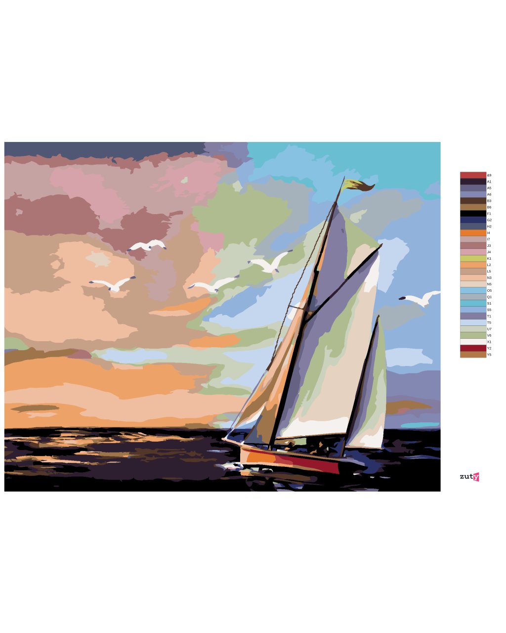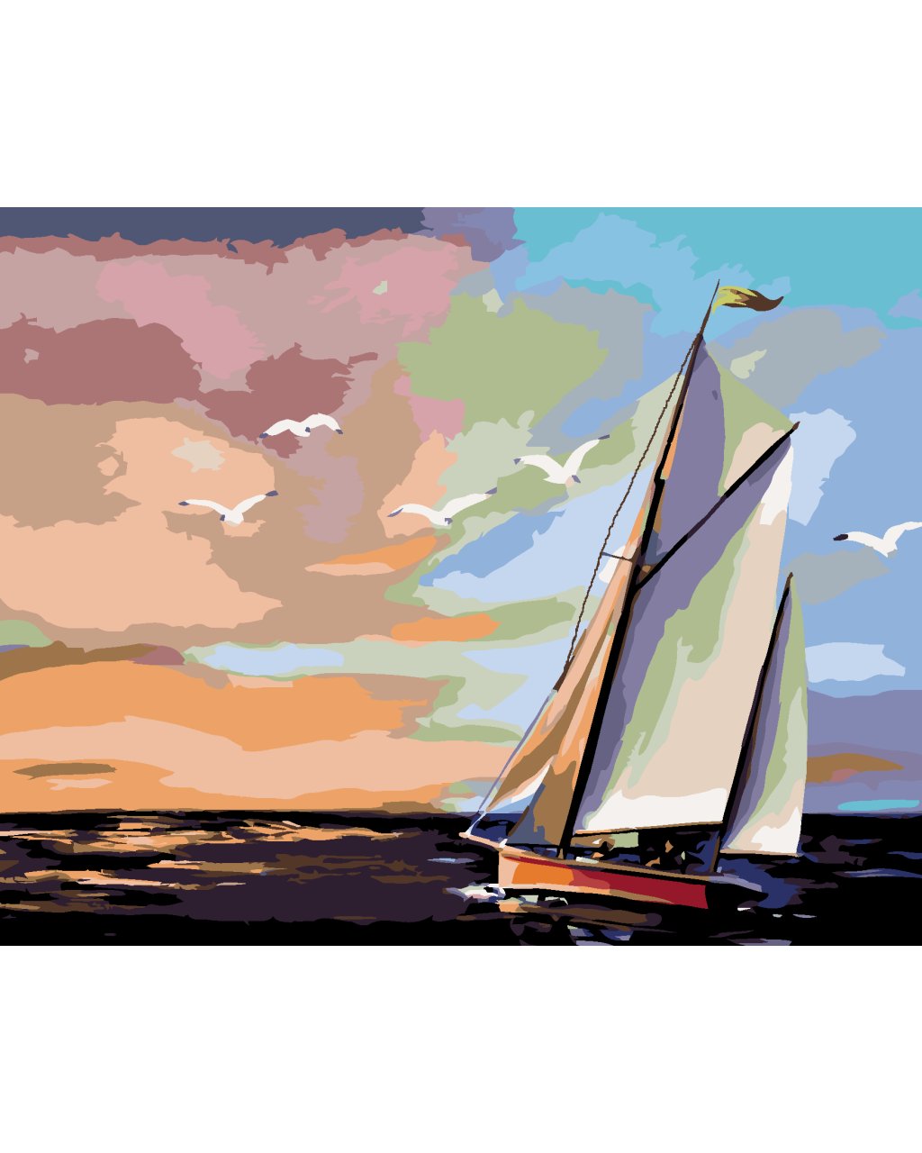 Maľovanie podľa čísel - PLACHETNICA A FAREBNÝ ZÁPAD SLNKA (D. RUSTY RUST)