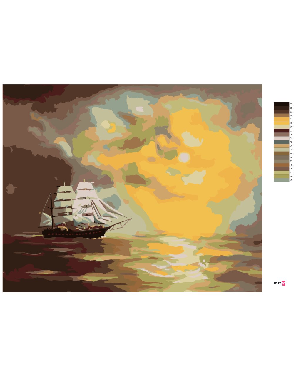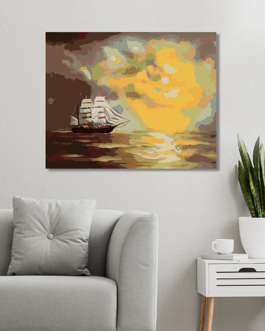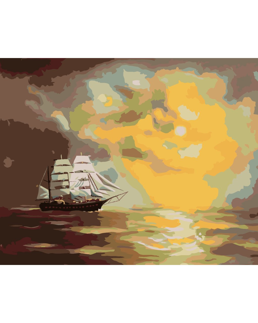 Maľovanie podľa čísel - PLACHETNICA A SLNKO V MRAKOCH (D. RUSTY RUST)