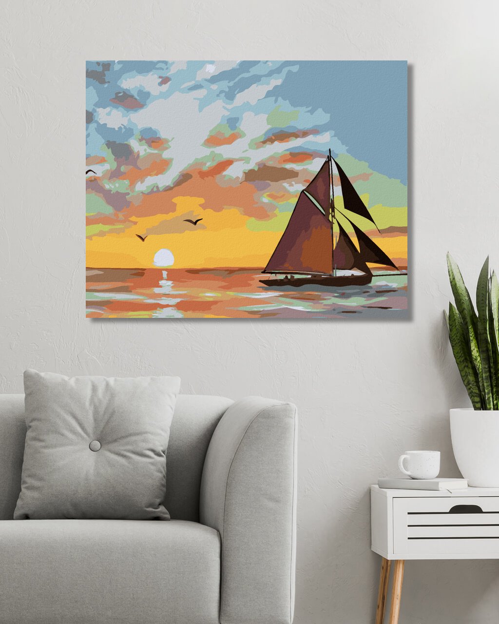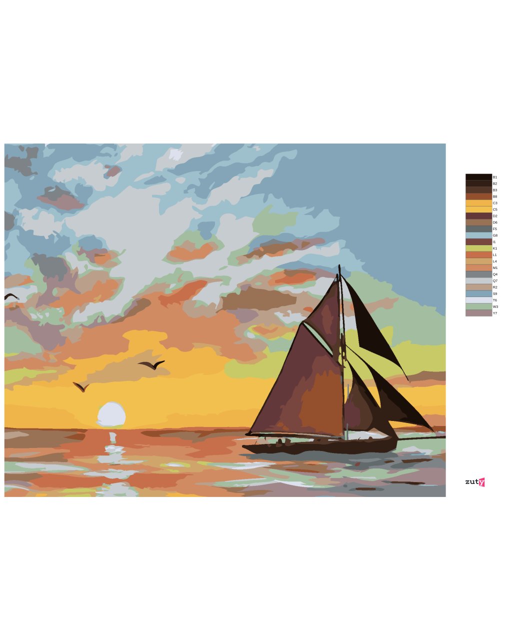 Maľovanie podľa čísel - PLACHETNICA A ZÁPAD SLNKA (D. RUSTY RUST)