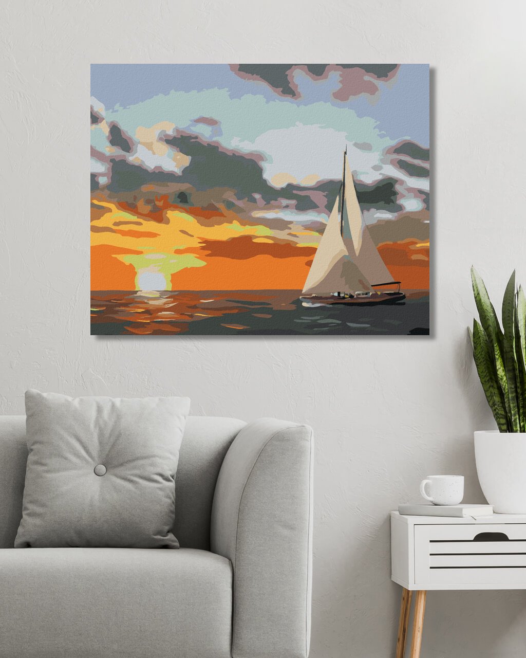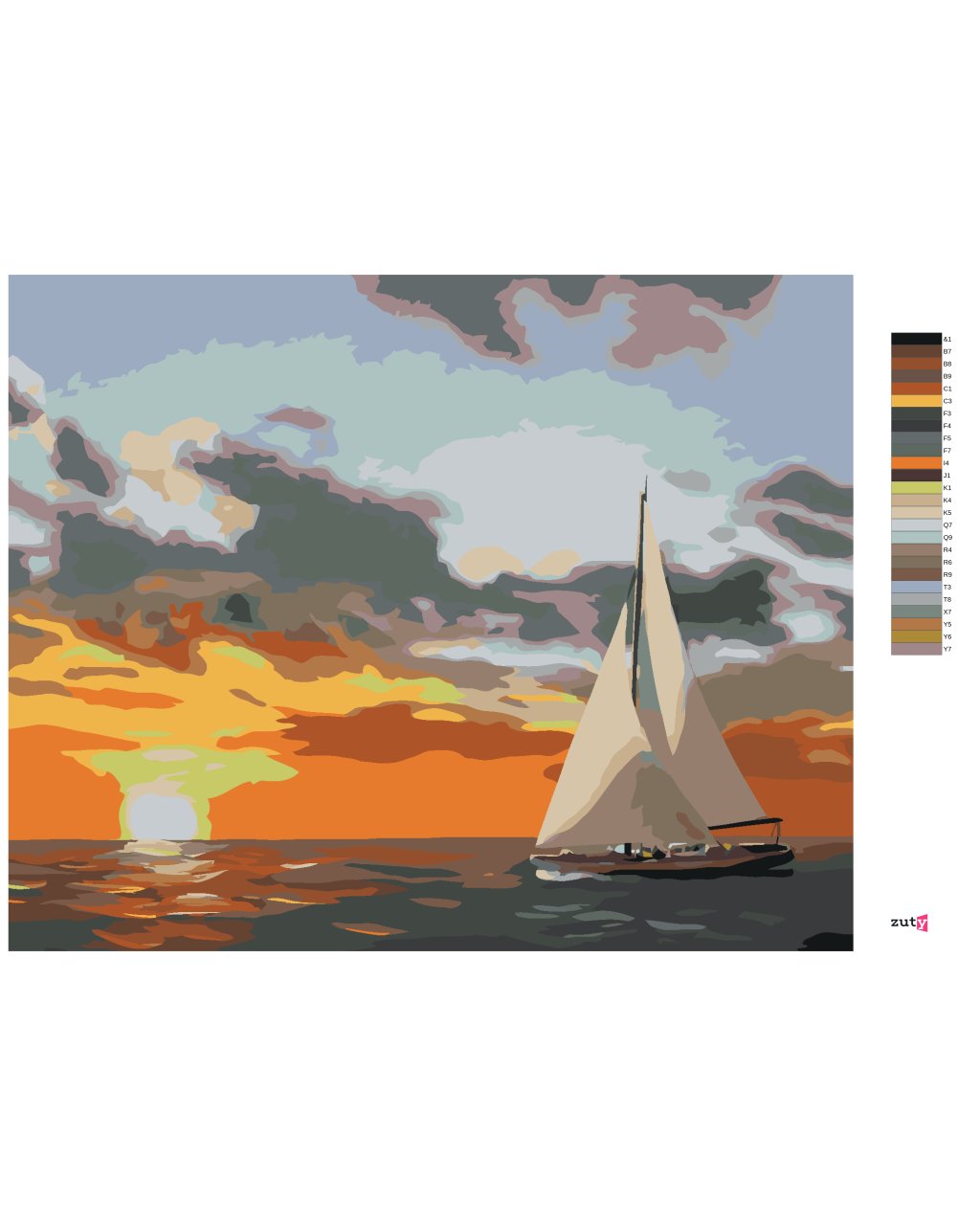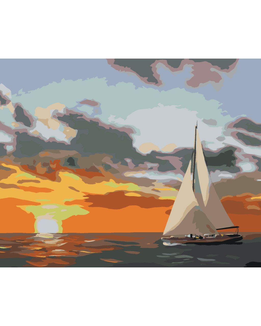 Maľovanie podľa čísel - PLACHETNICA A ZÁPAD SLNKA NA MORI (D. RUSTY RUST)
