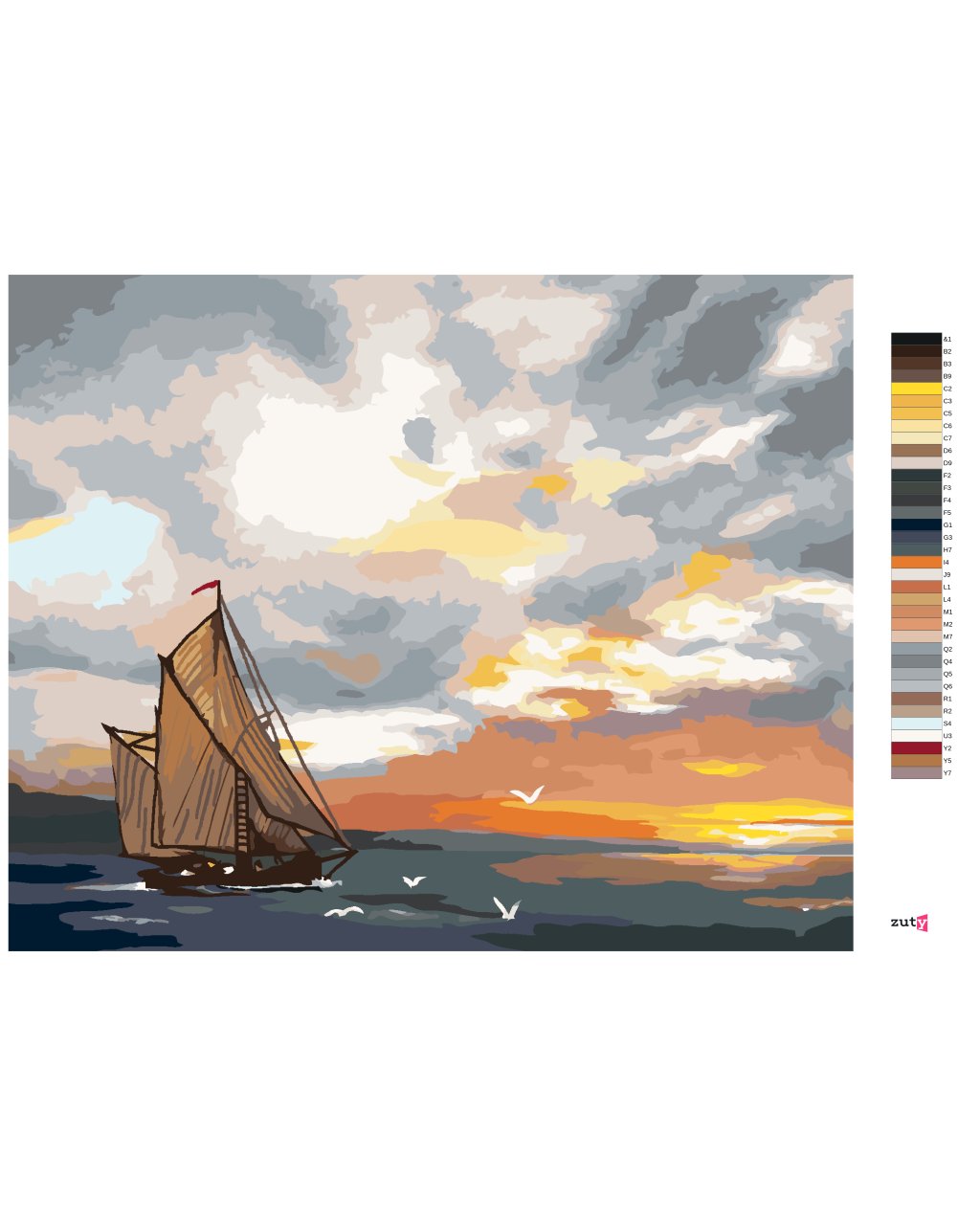 Maľovanie podľa čísel - PLACHETNICA NA MORI A ZÁPAD SLNKA (D. RUSTY RUST)