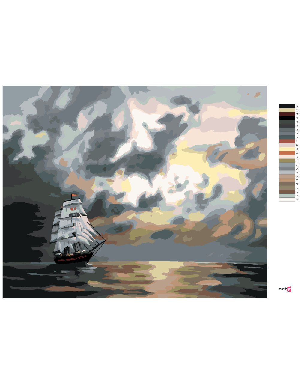 Maľovanie podľa čísel - PLACHETNICA PO ZOTMENÍ (D. RUSTY RUST)