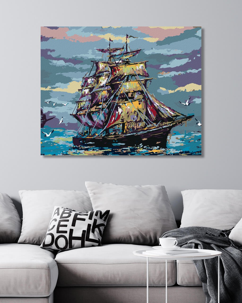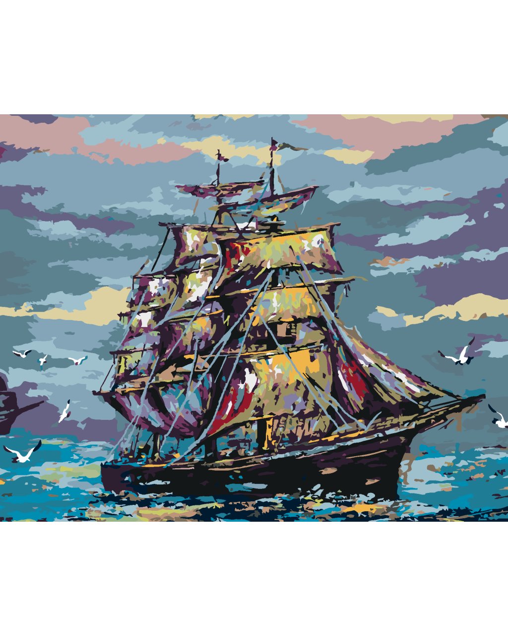 Maľovanie podľa čísel - PLACHETNICA VO FAREBNÝCH TÓNOCH