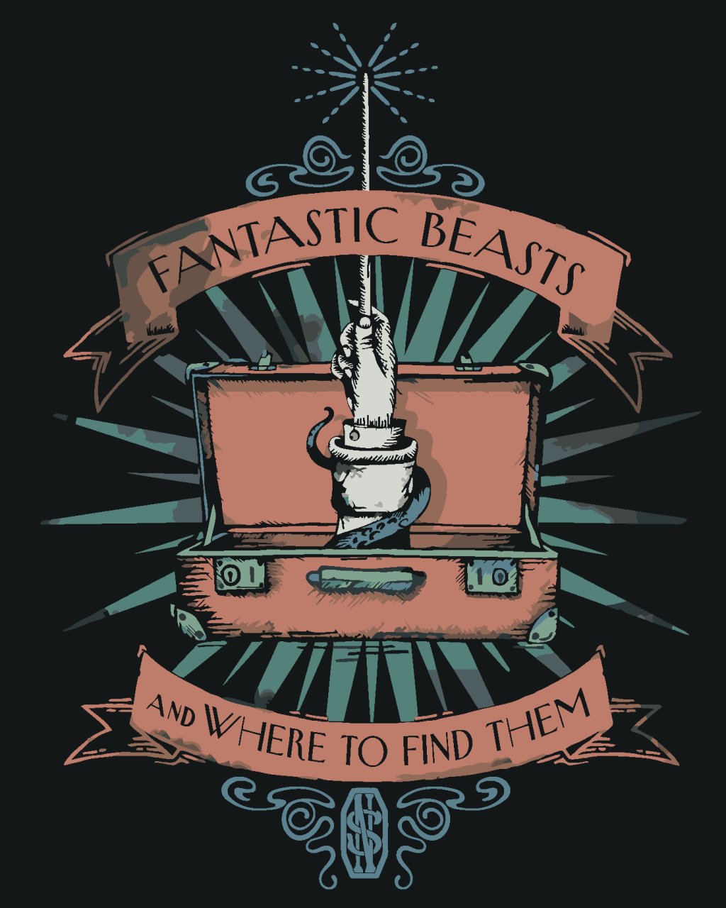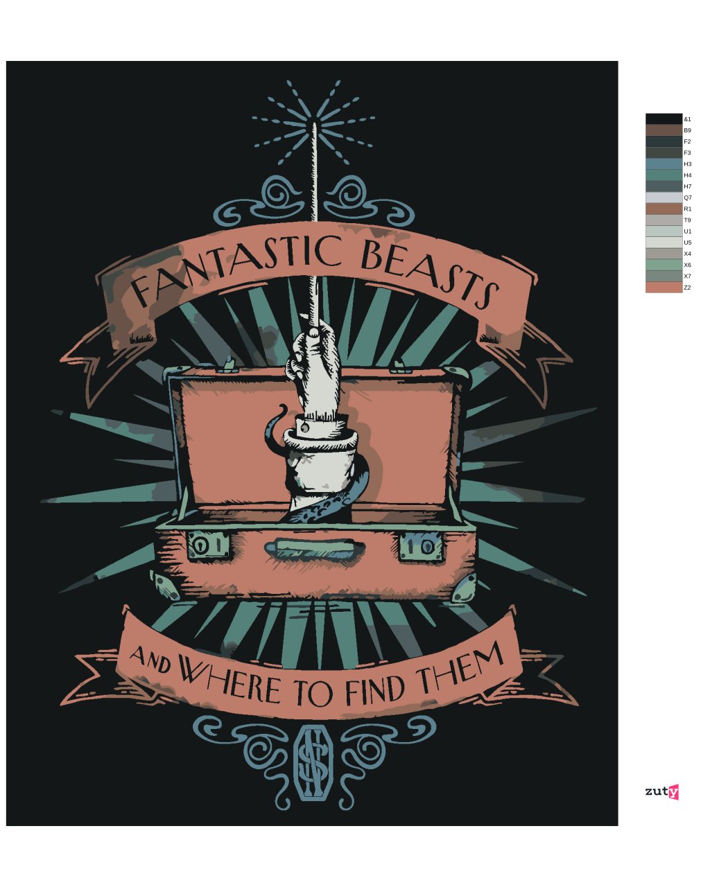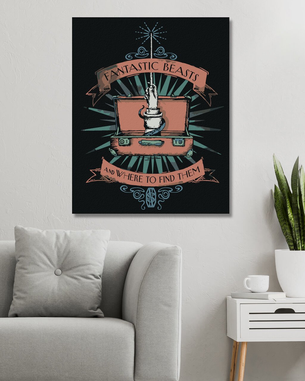 Maľovanie podľa čísel - PLAGÁT RUKA S PALIČKOU V SCAMANDEROVOM KUFRI (FANTASTICKÉ ZVIERATÁ)