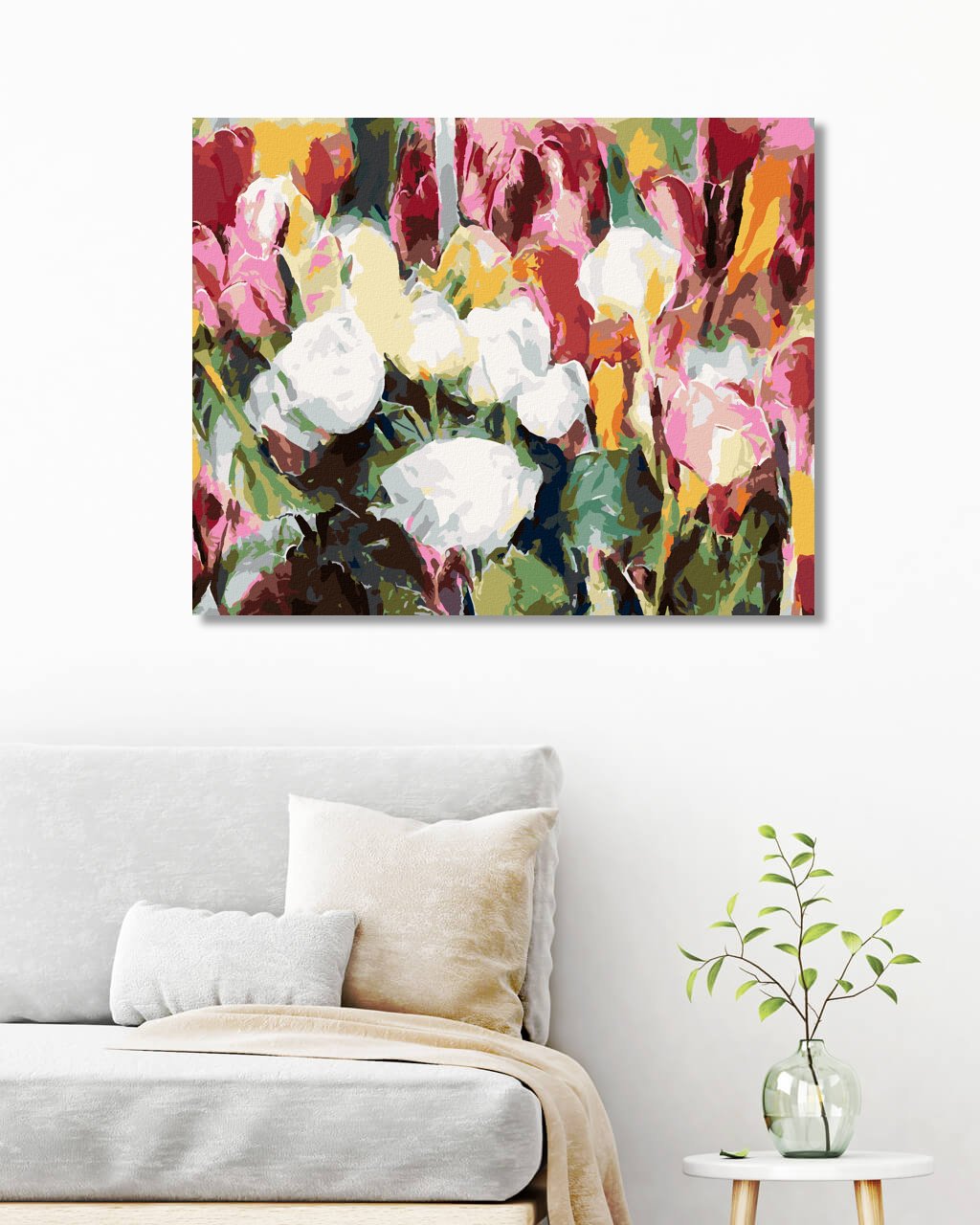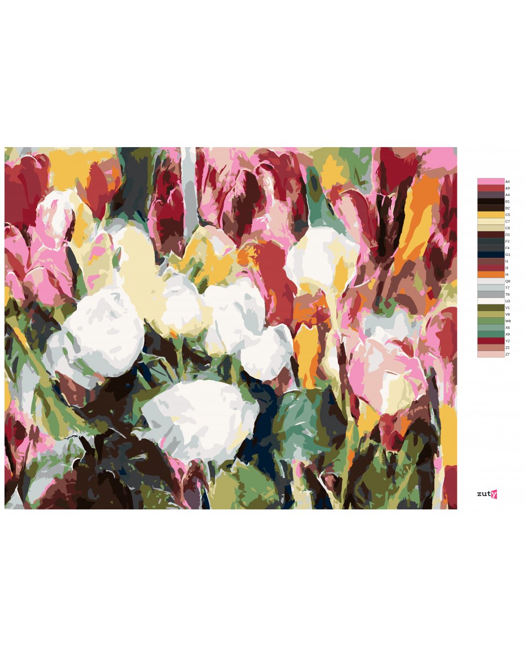 Maľovanie podľa čísel - PLNO RUŽÍ A TULIPÁNOV