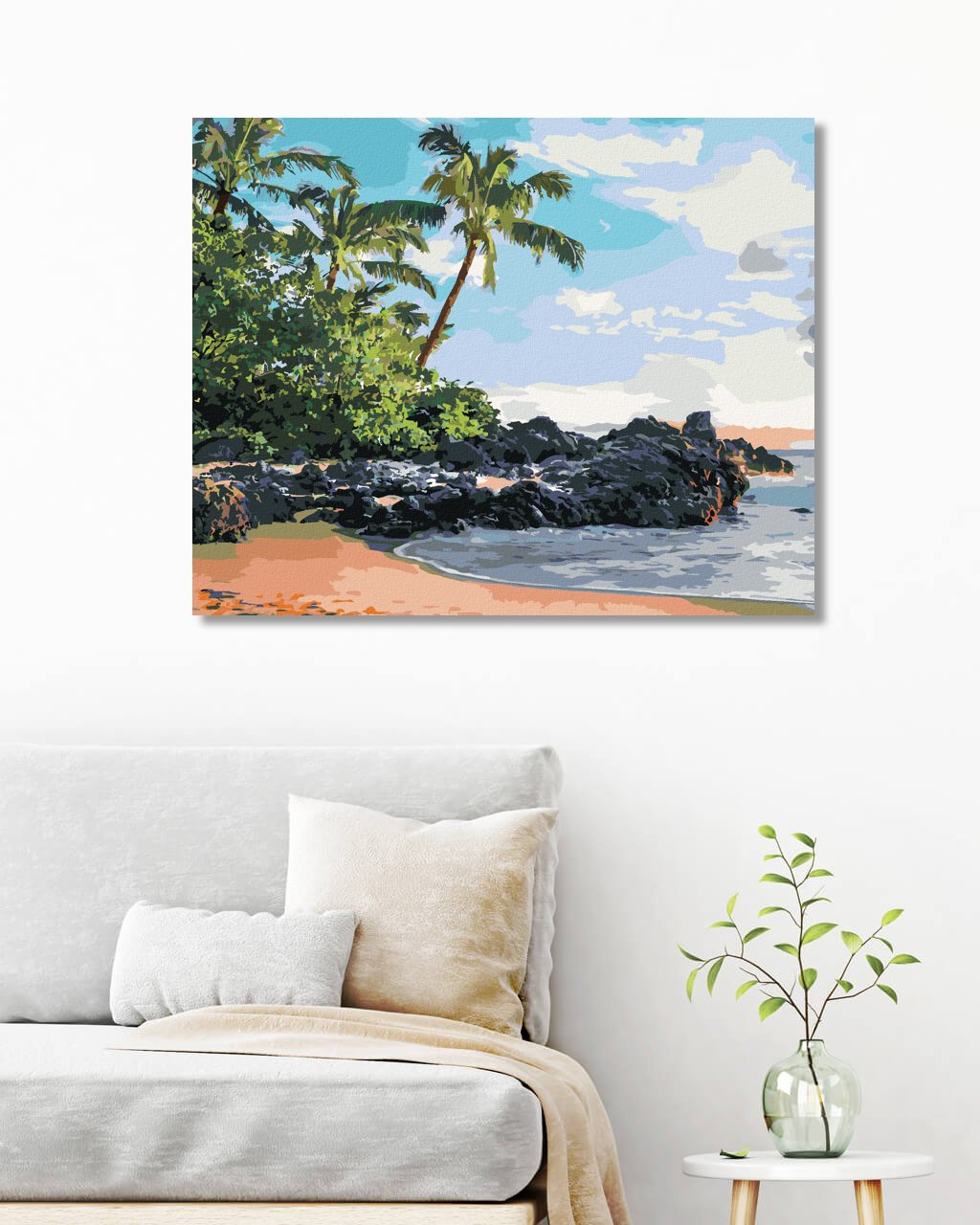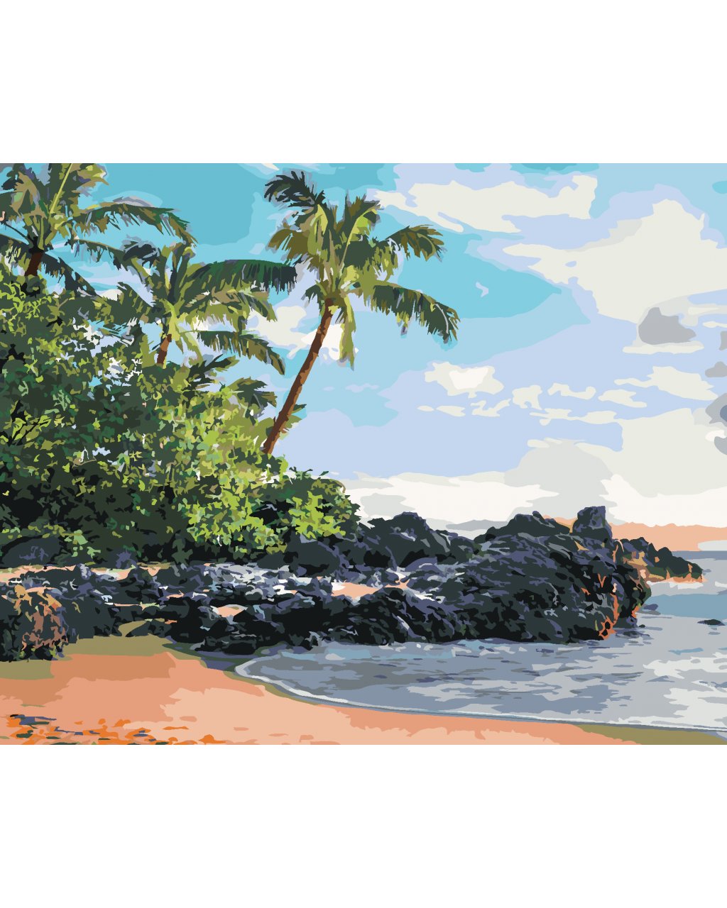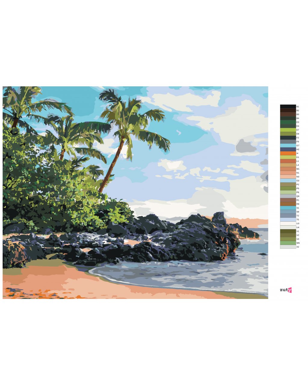 Maľovanie podľa čísel - POBREŽIE, PALMY A ZÁPAD SLNKA (TED DAVIS)