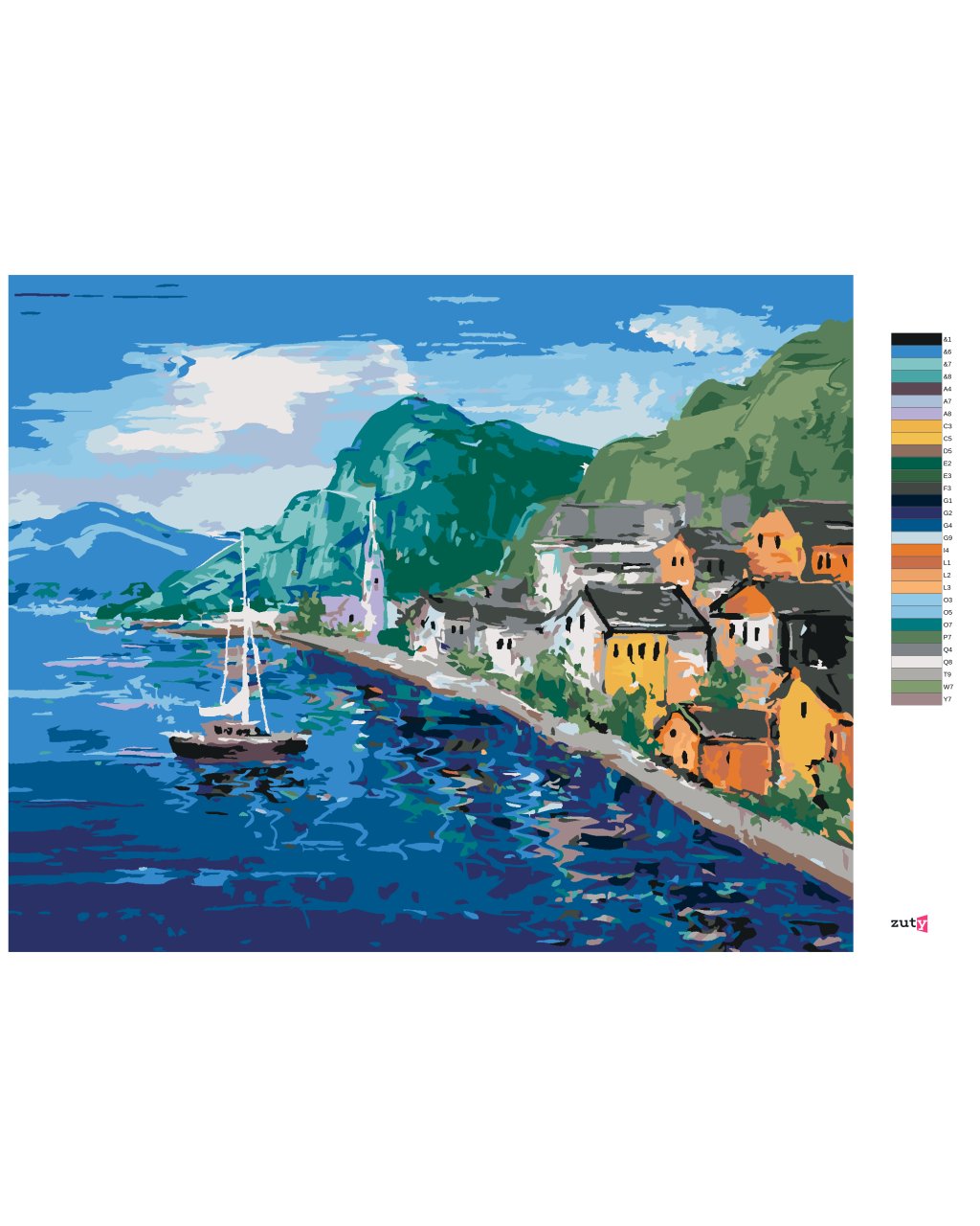 Maľovanie podľa čísel - POBREŽIE PRI HALLSTATT V RAKÚSKU