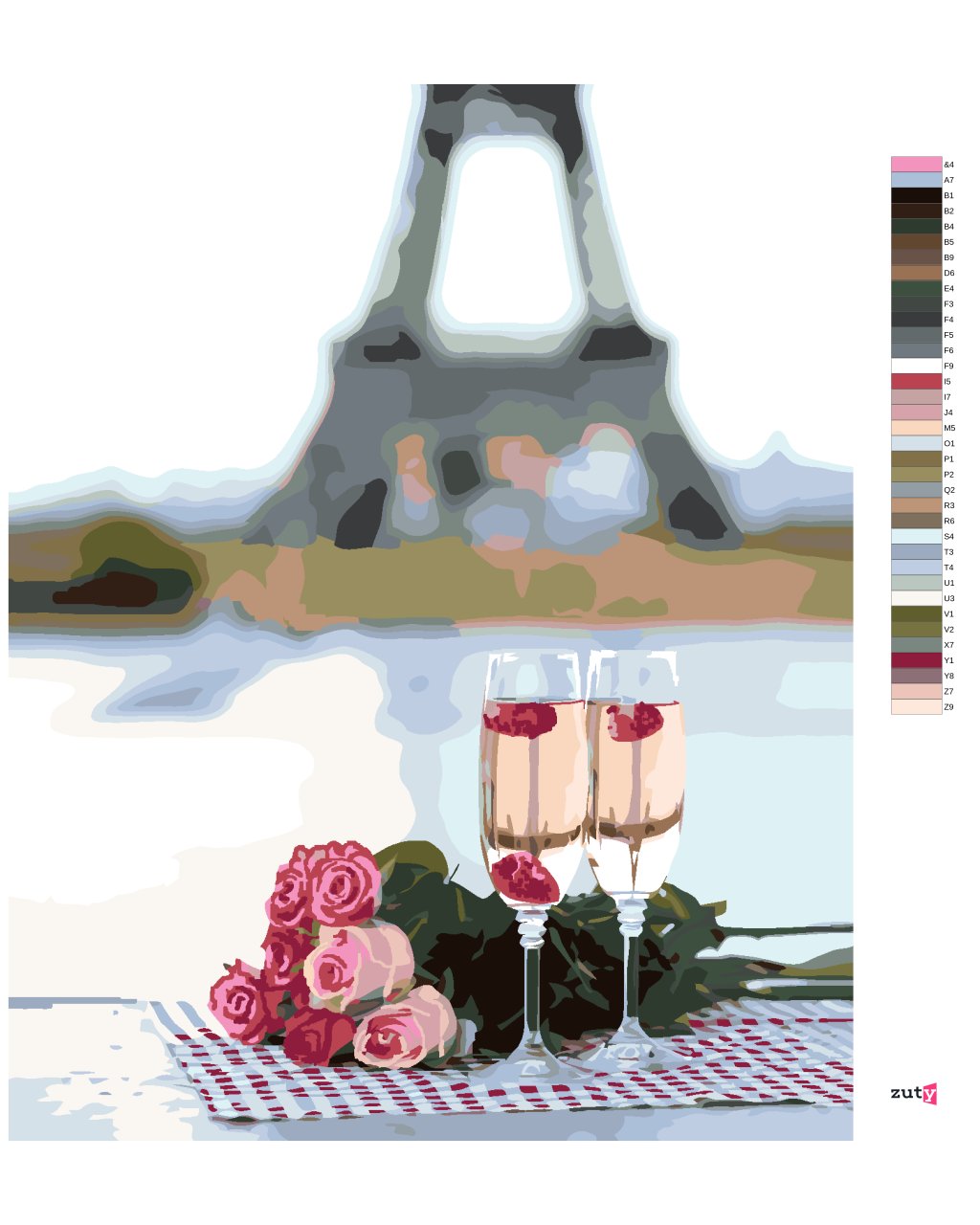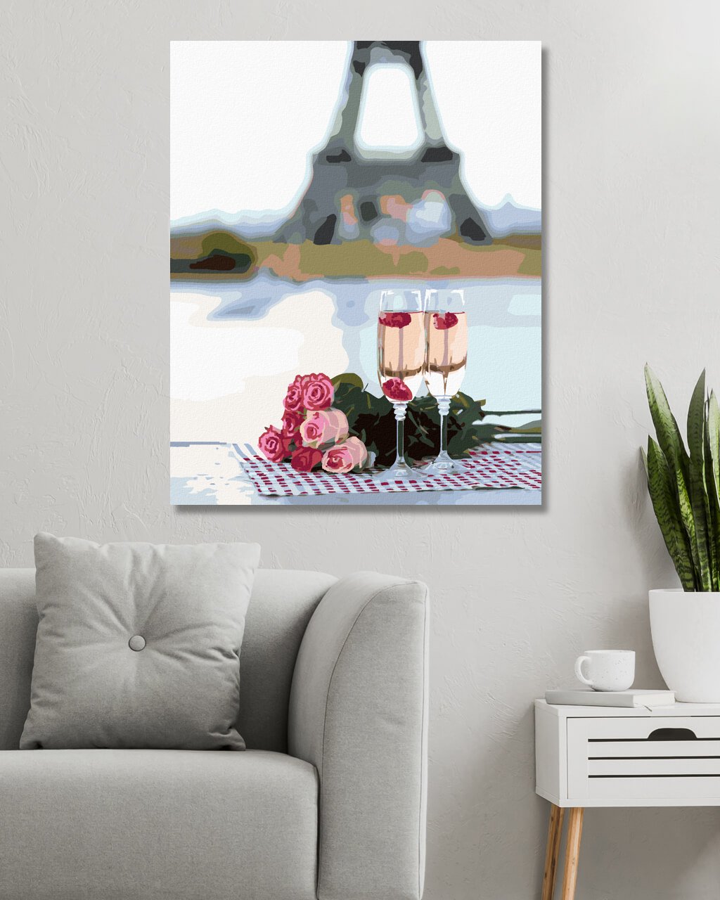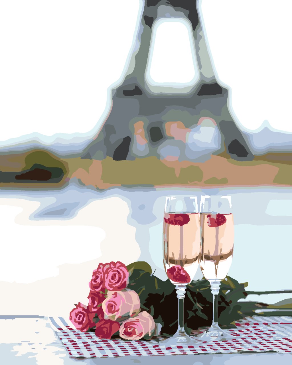 Maľovanie podľa čísel - POHÁRE A RUŽE V PARÍŽI A EIFFELOVA VEŽA 2