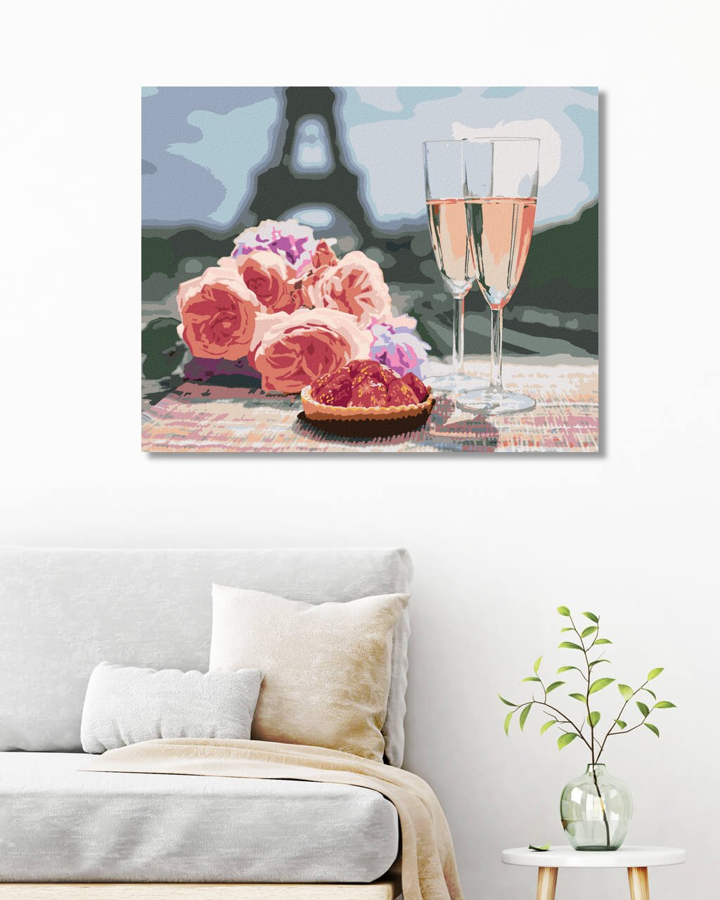 Maľovanie podľa čísel - POHÁRE A RUŽE V PARÍŽI A EIFFELOVA VEŽA