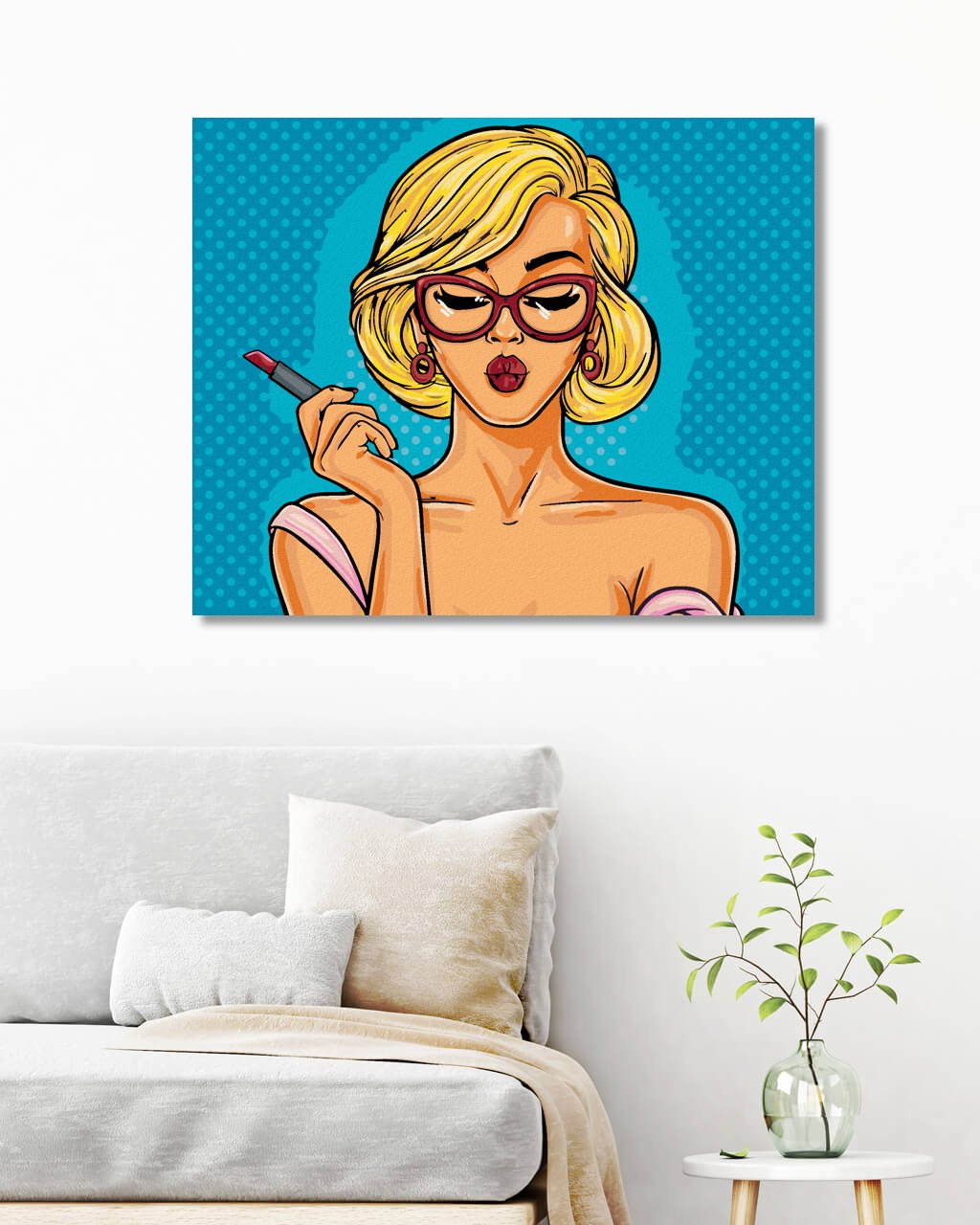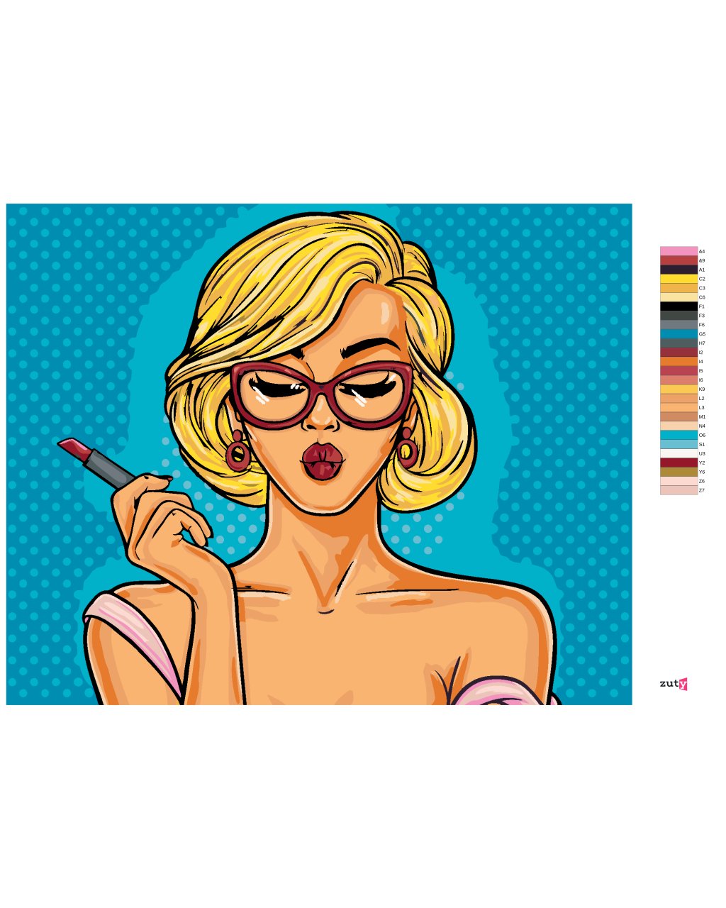 Maľovanie podľa čísel - POP-ART BLONDÝNA S RÚŽOM