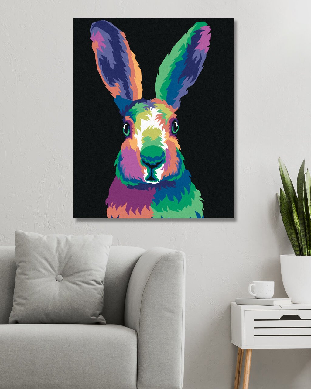 Maľovanie podľa čísel - POP-ART KRÁLIK NA ČIERNOM POZADÍ