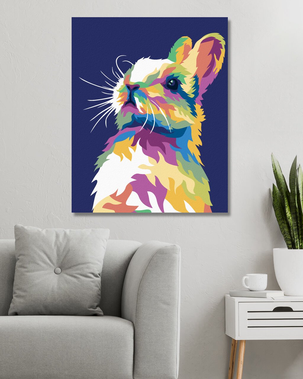 Maľovanie podľa čísel - POP-ART KRÁLIK NA MODROM POZADÍ
