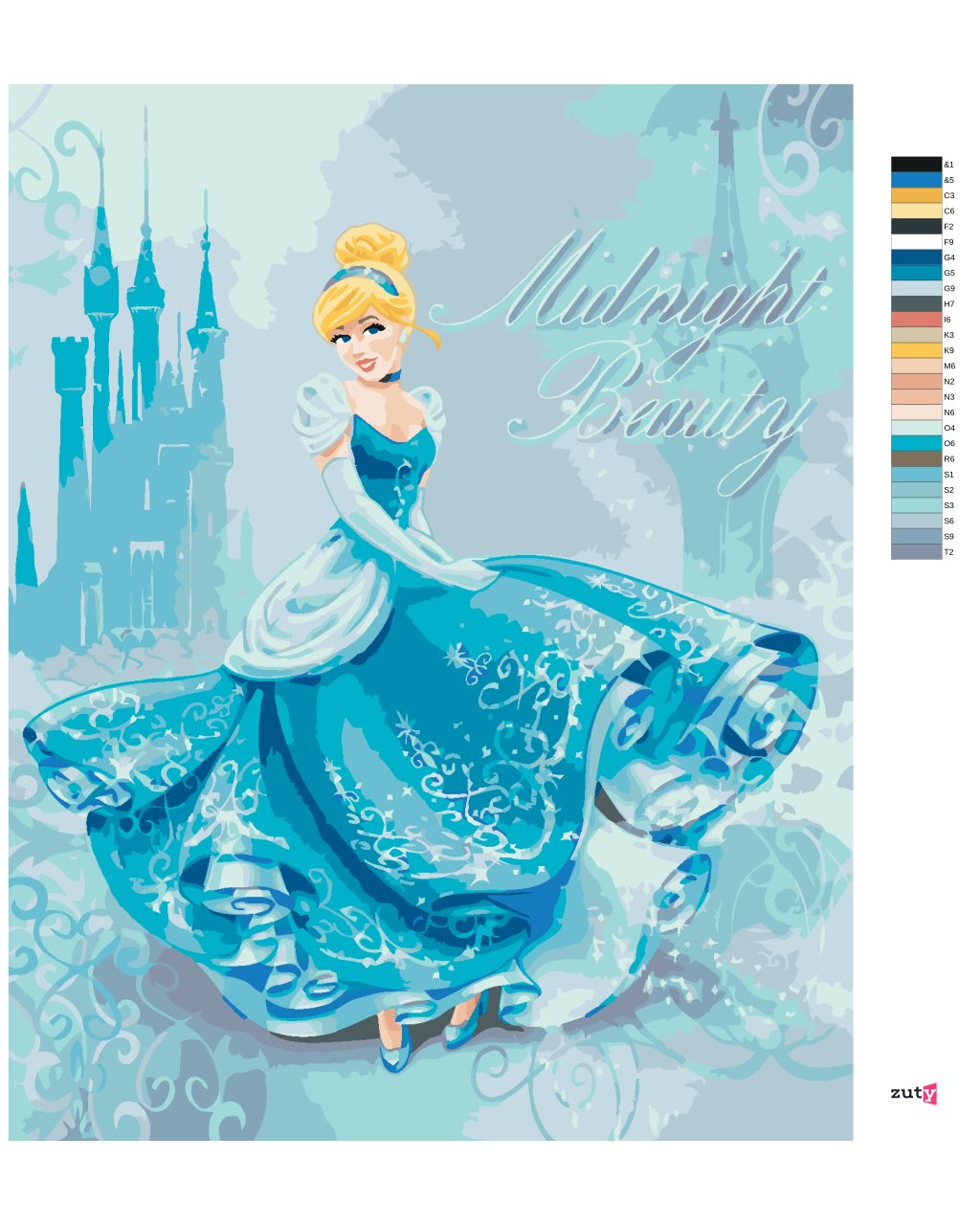 Maľovanie podľa čísel - POPOLUŠKA NA MODROM POZADÍ