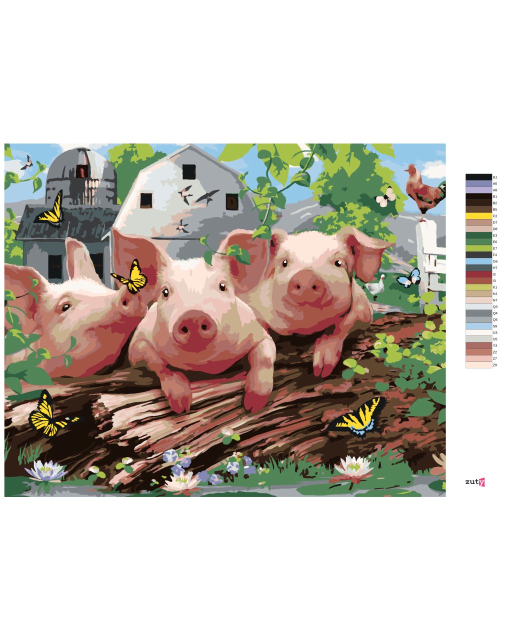 Maľovanie podľa čísel - PRASIATKA NA FARME A MOTÝLE (HOWARD ROBINSON)