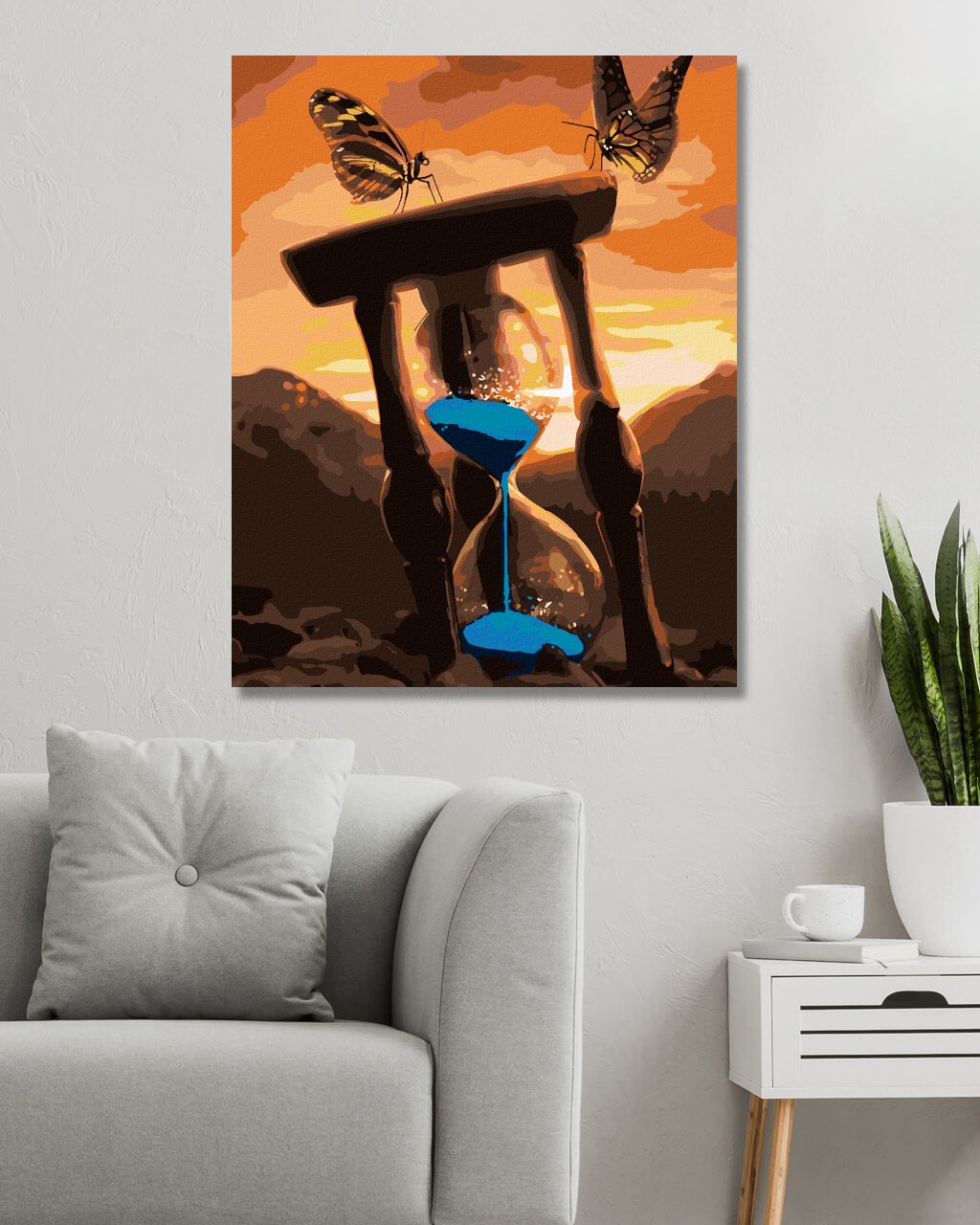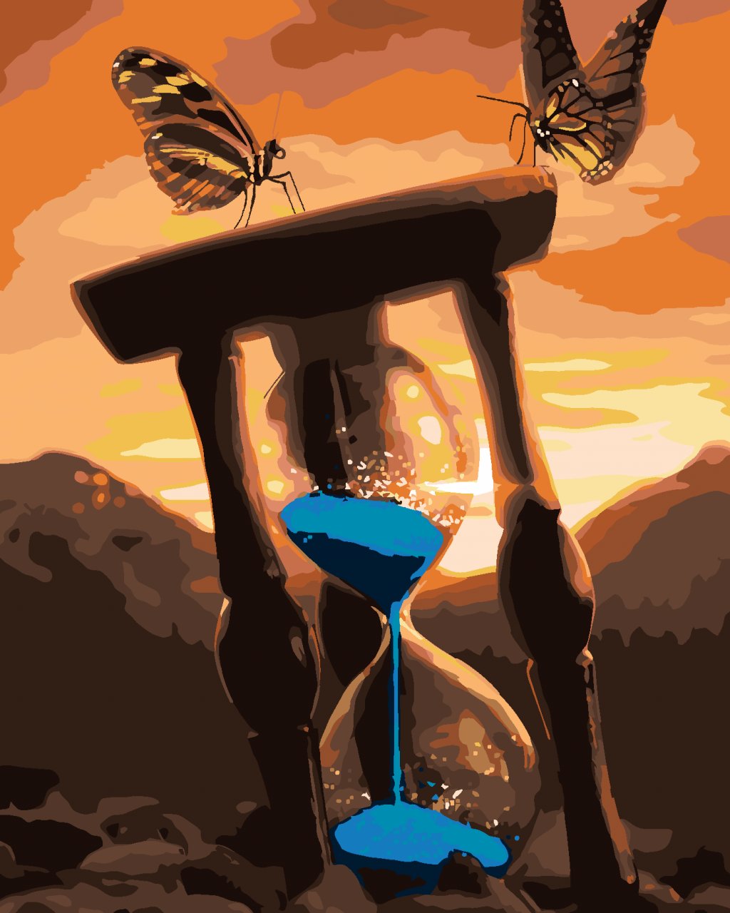 Maľovanie podľa čísel - PRESÝPACIE HODINY A DVA MOTÝLE