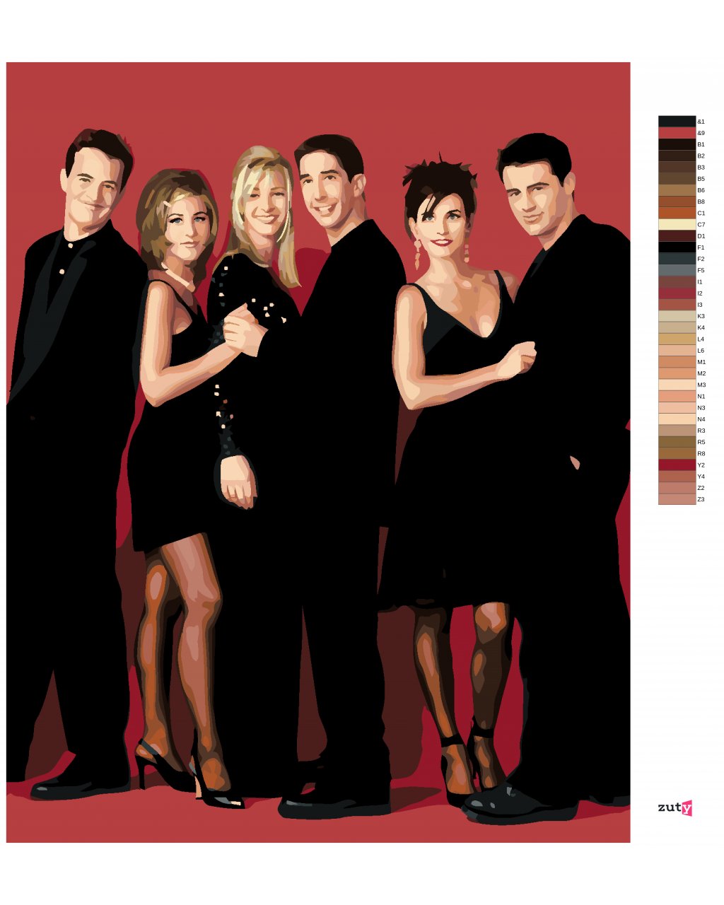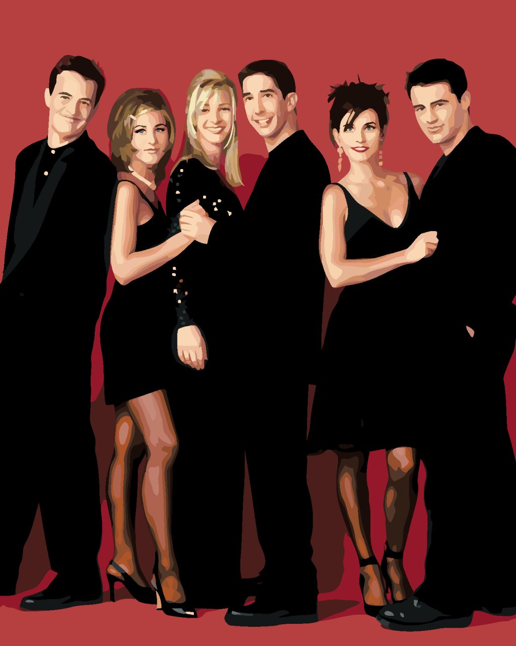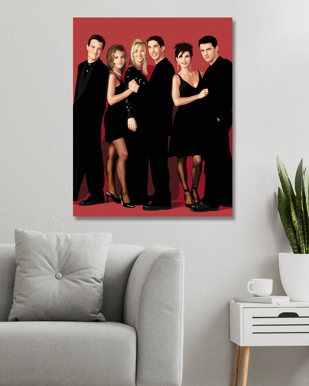 Maľovanie podľa čísel - PRIATELIA V ČIERNOM NA ČERVENOM POZADÍ
