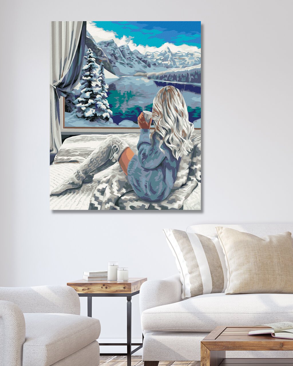 Maľovanie podľa čísel - PRÍJEMNÝ POHĽAD NA ZASNEŽENÉ JAZERO