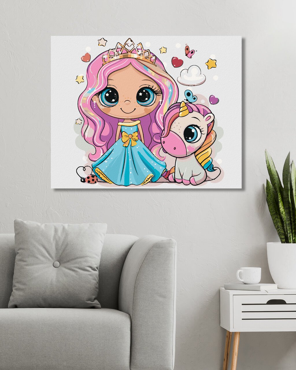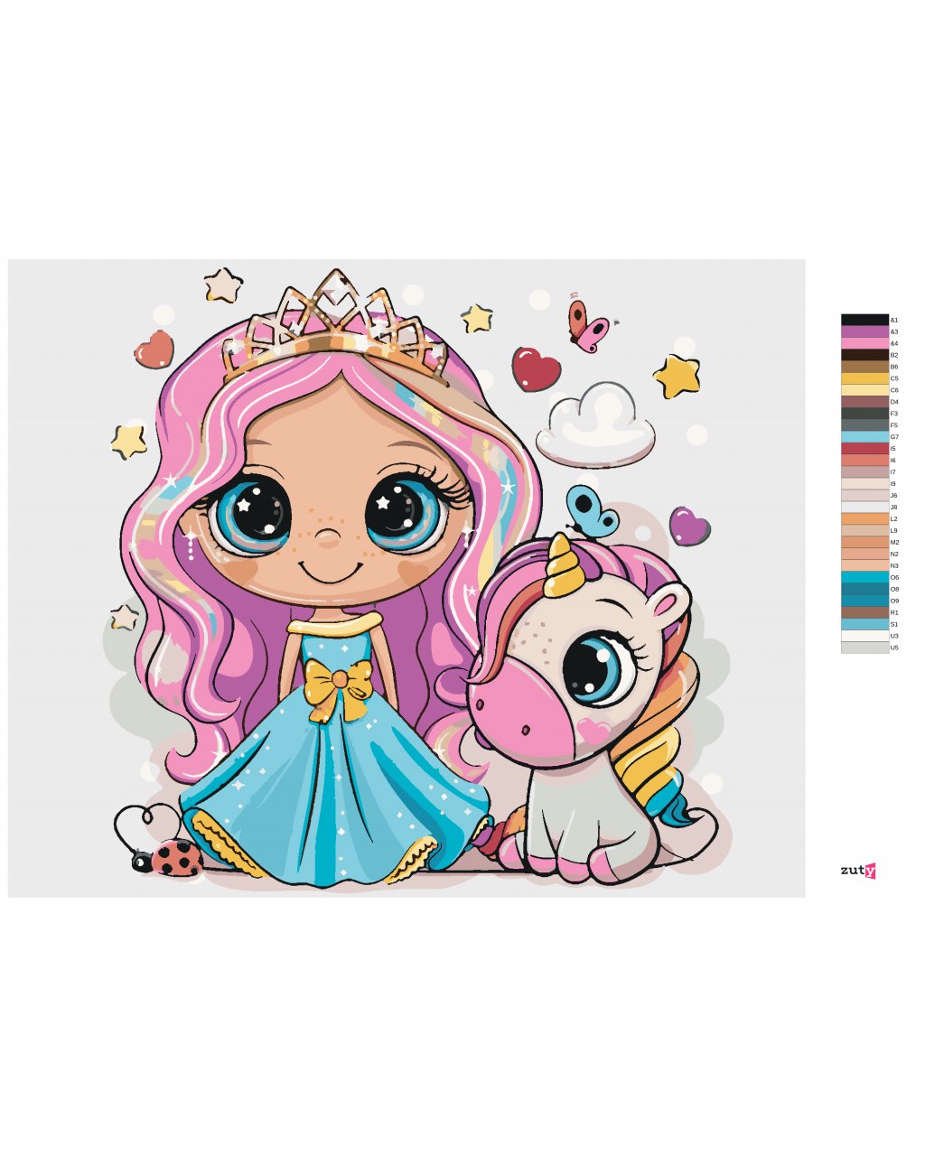 Maľovanie podľa čísel - PRINCEZNA A DÚHOVÝ JEDNOROŽEC