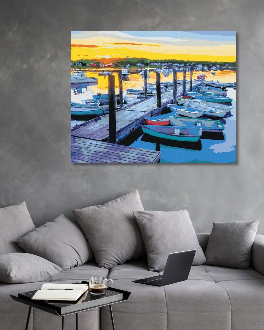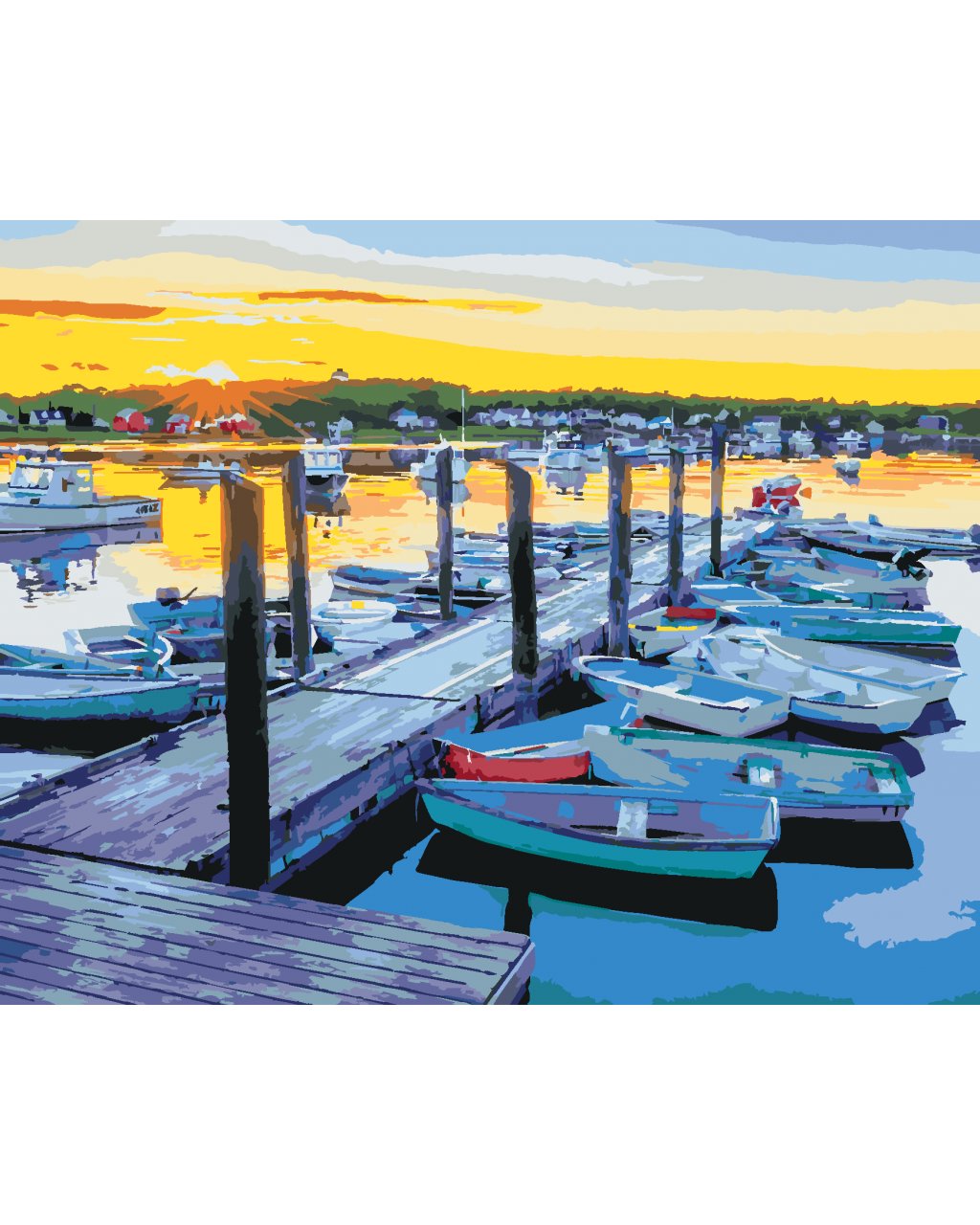 Maľovanie podľa čísel - PRÍSTAV A ZÁPAD SLNKA (TED DAVIS)