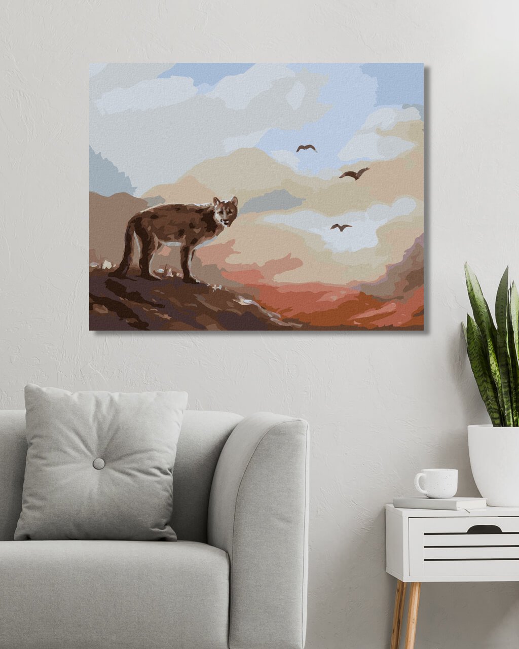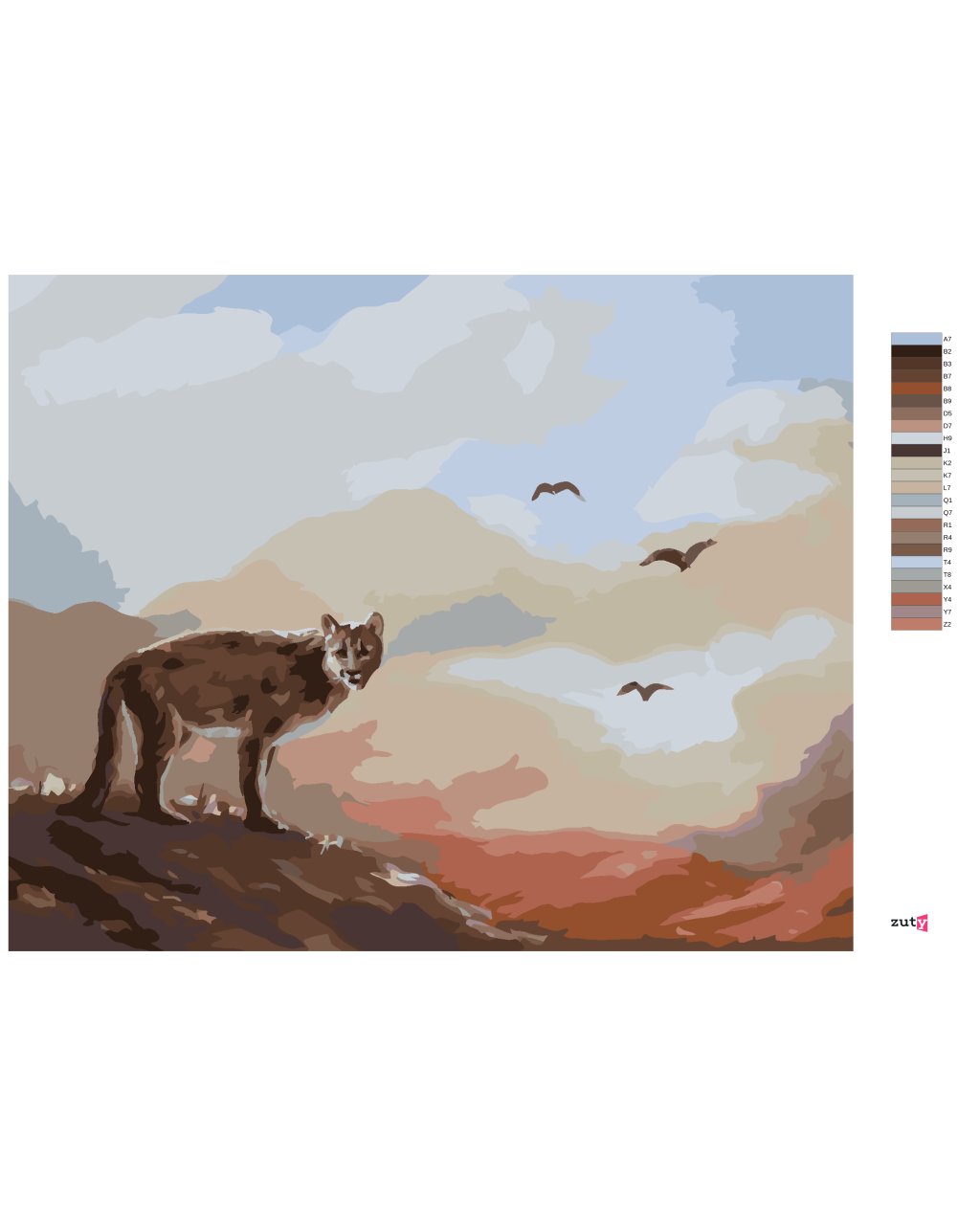 Maľovanie podľa čísel - PUMA, VTÁKY A ZÁPAD SLNKA (D. RUSTY RUST)