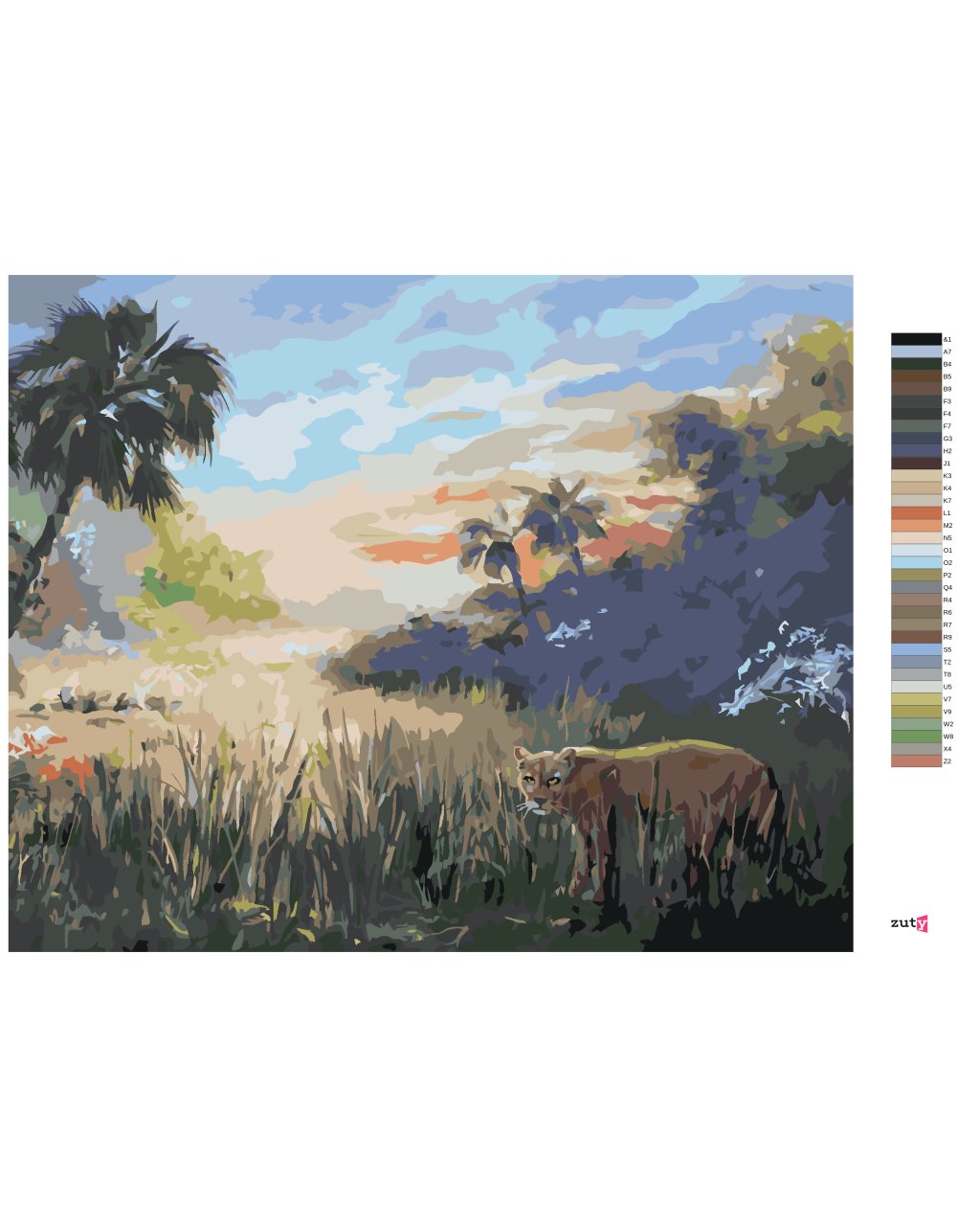 Maľovanie podľa čísel - PUMA A PALMY (D. RUSTY RUST)