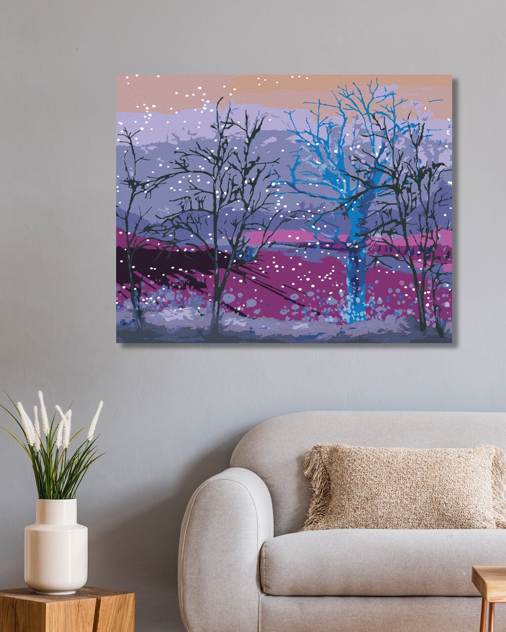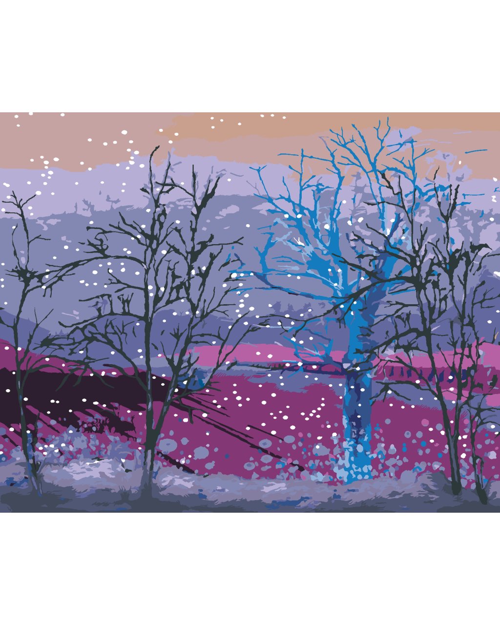 Maľovanie podľa čísel - RANNÝ SNIEŽIK PADAJÚCI NA STROMY V LESE