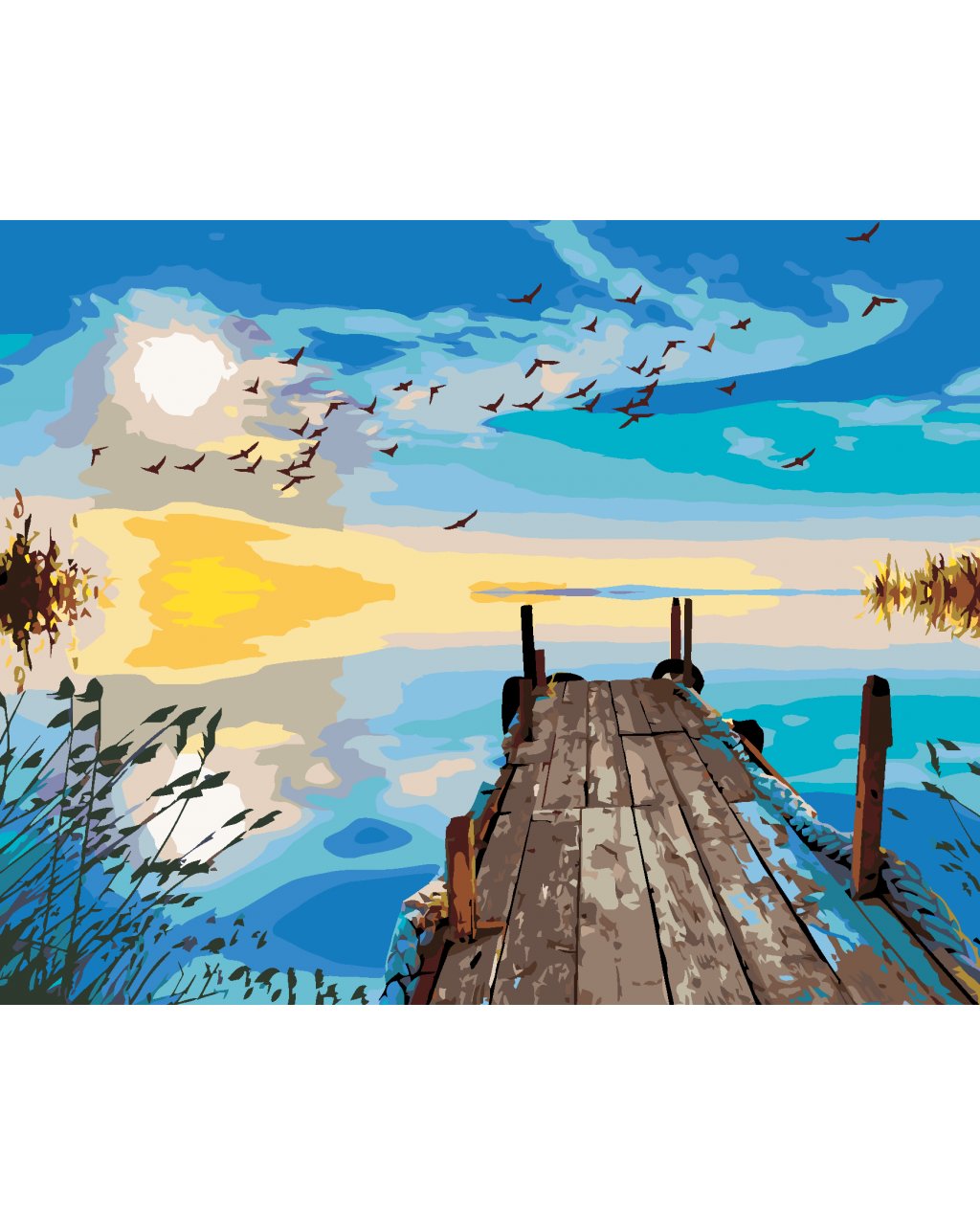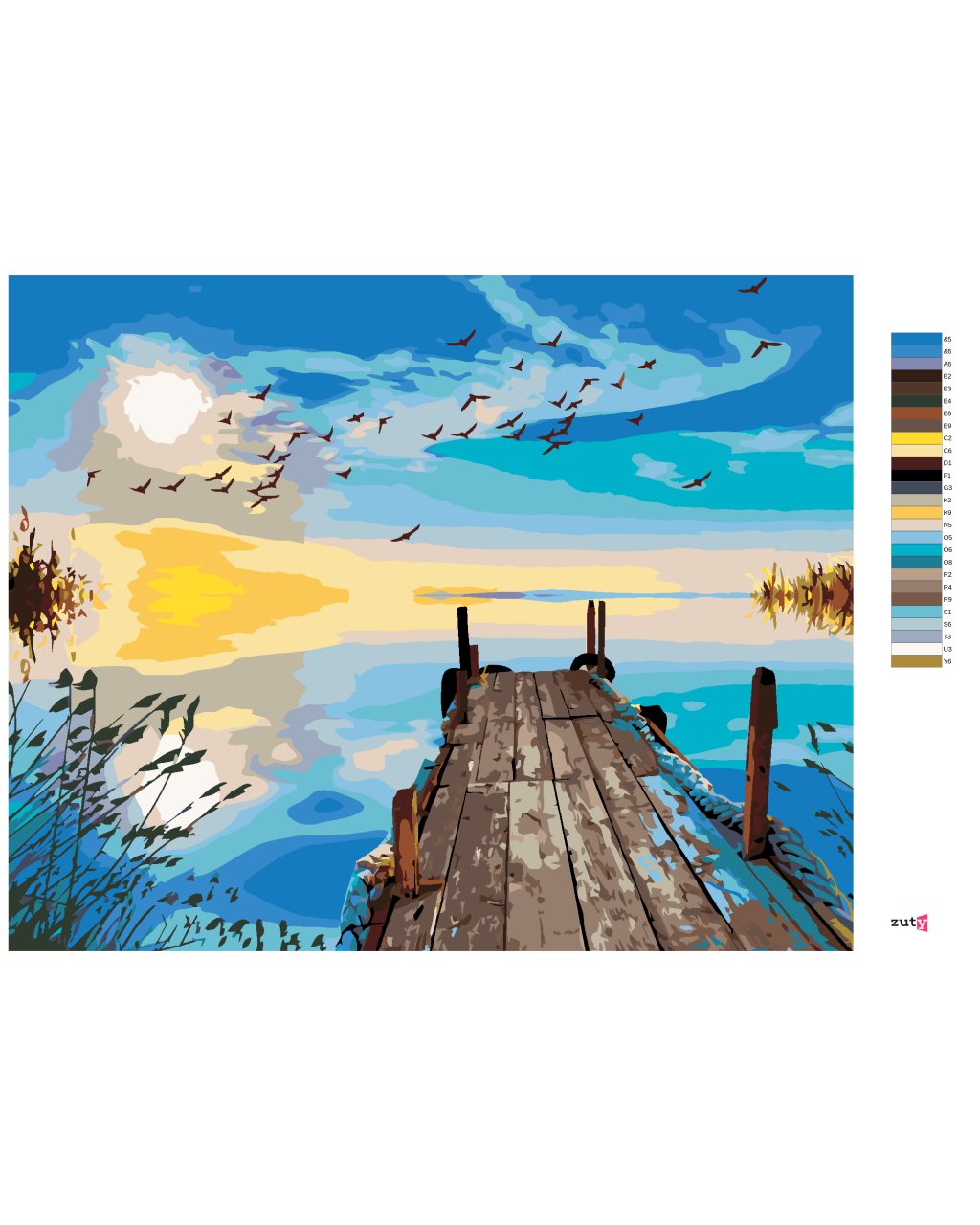 Maľovanie podľa čísel - RÁNO NA MÓLE PRI JAZERE