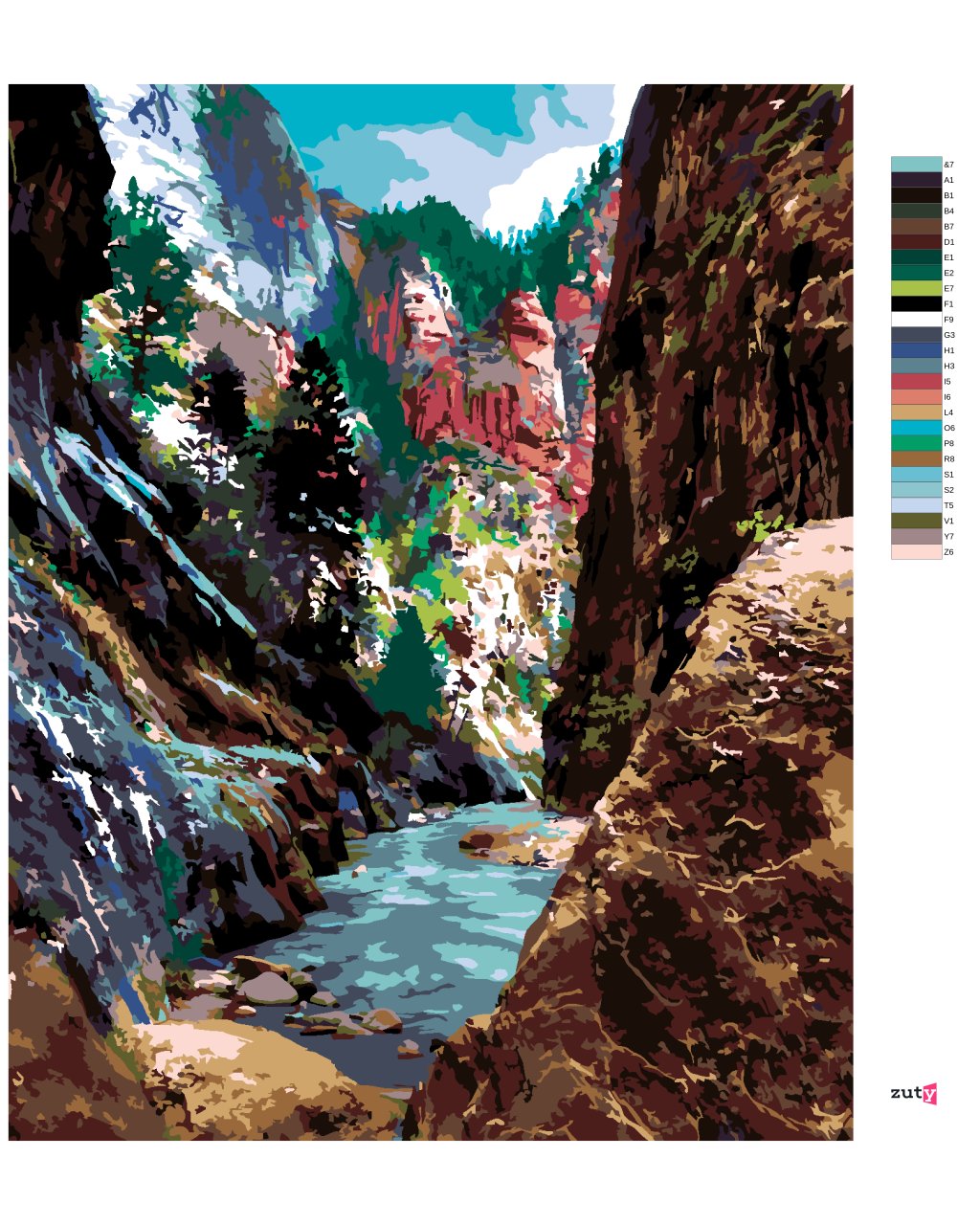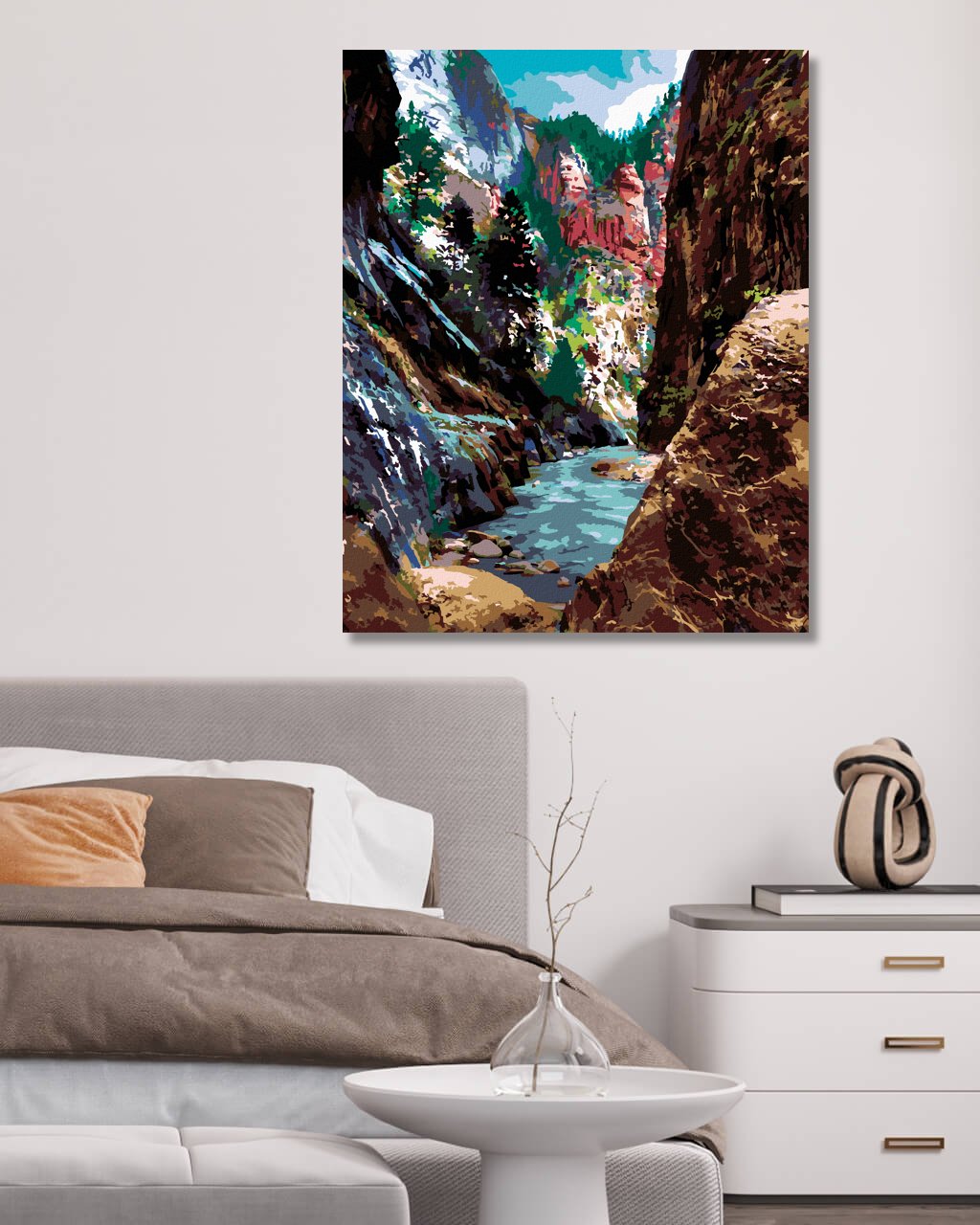 Maľovanie podľa čísel - RIEKA A STROMY V KAŇONE (TED DAVIS)