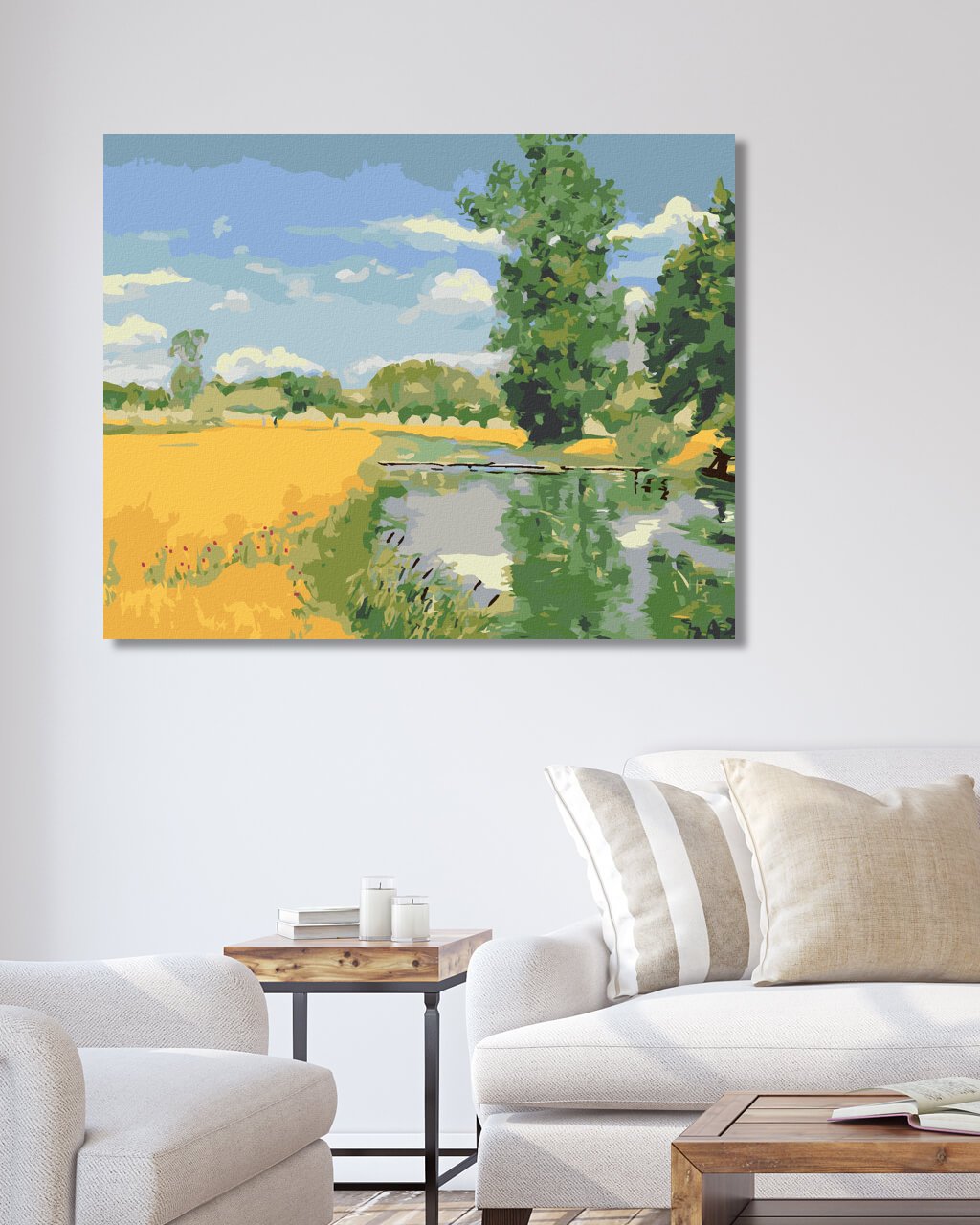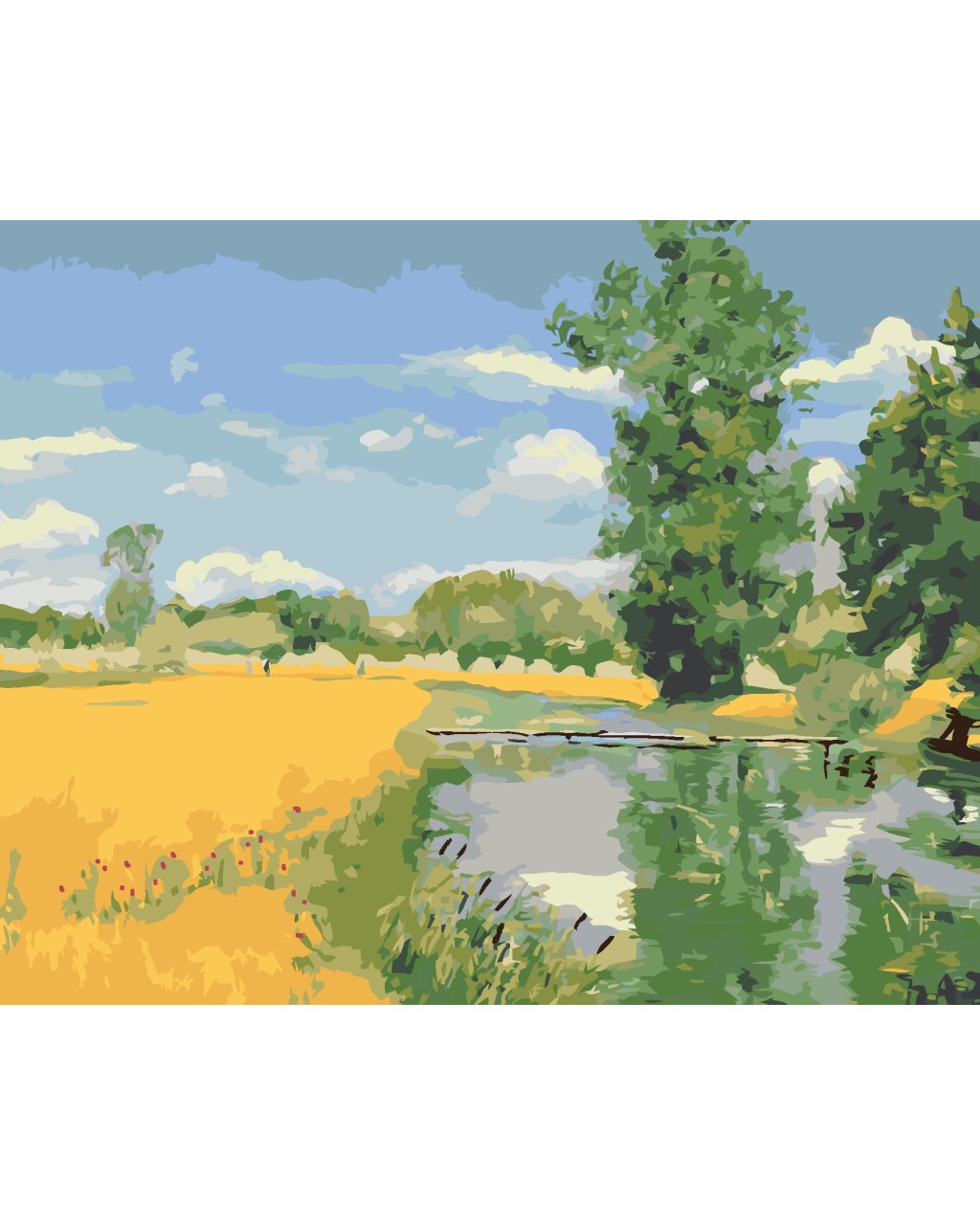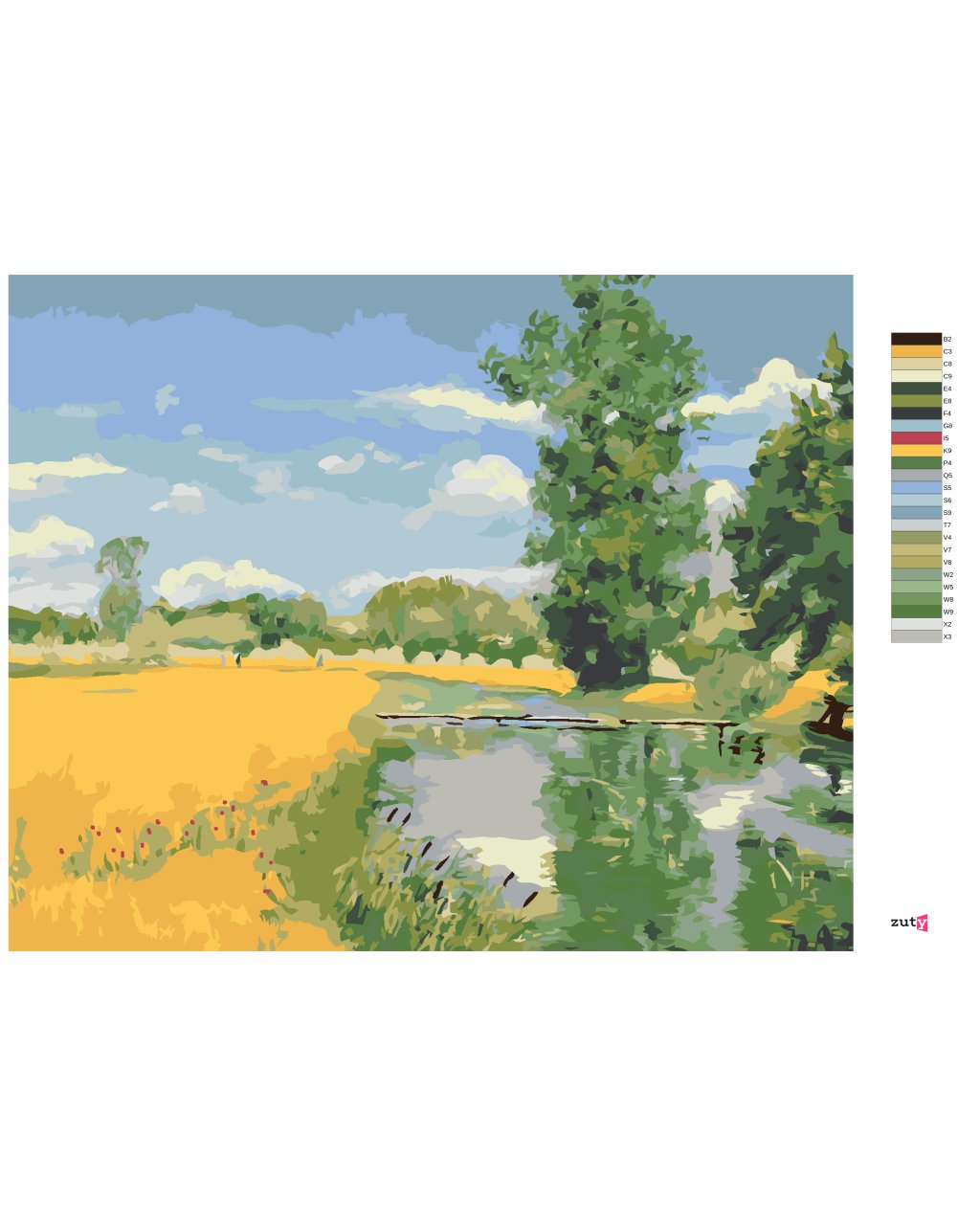 Maľovanie podľa čísel - RIEKA PRETEKAJÚCA KRAJINOU V DOBE ZBERU (H. A. BRENDEKILDE)