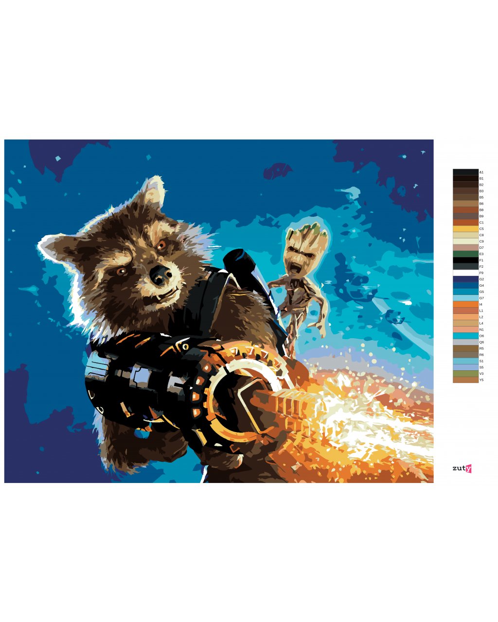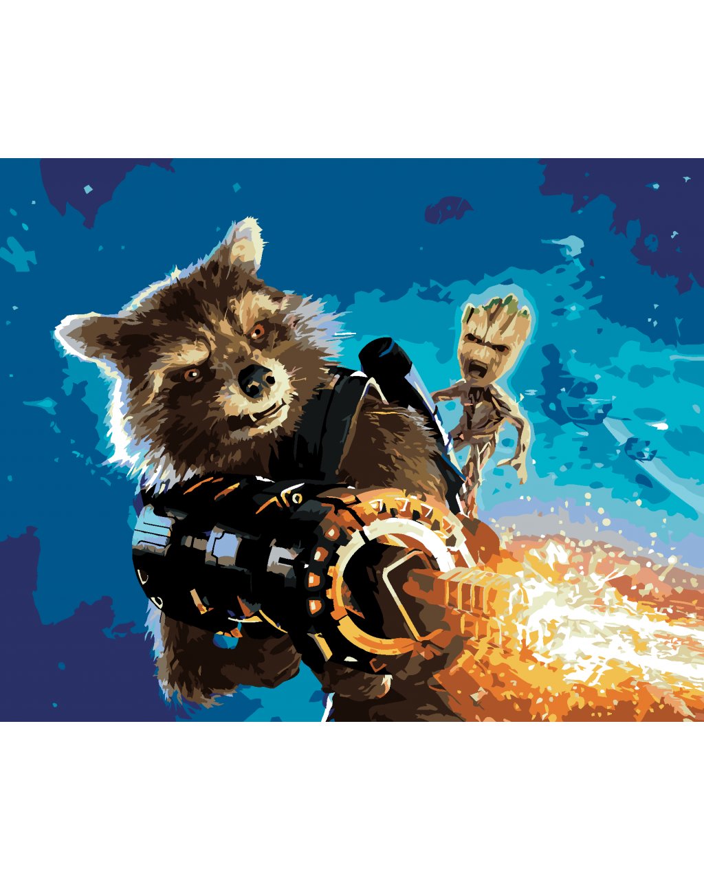Maľovanie podľa čísel - ROCKET A GROOT V BOJI (STRÁŽCOVIA GALAXIE)