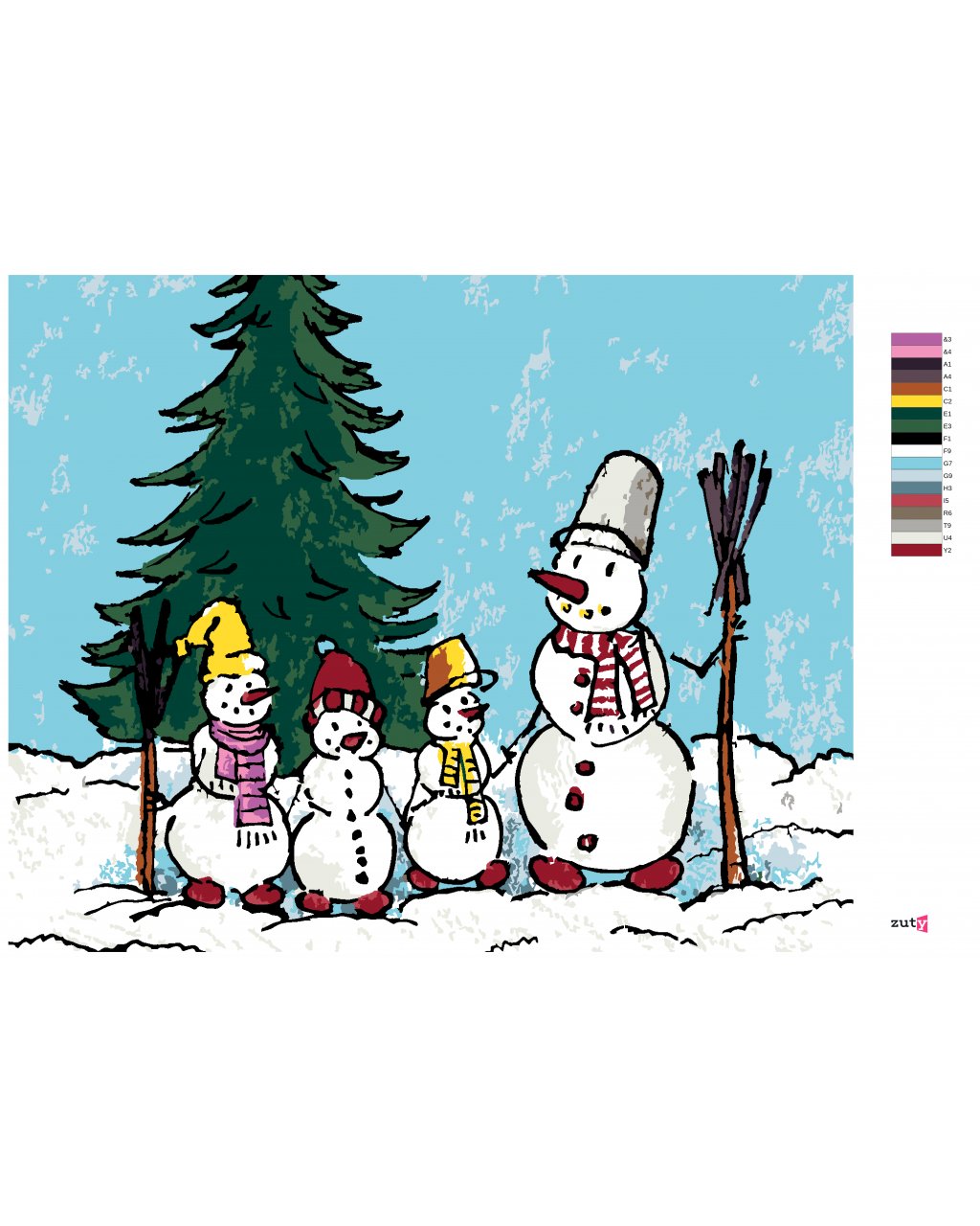 Maľovanie podľa čísel - RODINKA SNEHULIAKOV V LESE