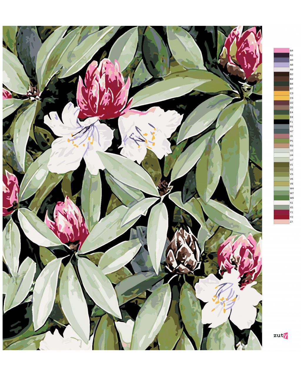 Maľovanie podľa čísel - RODODENDRON S BIELÝMI A RUŽOVÝMI KVETMI (ALEXANDRIA GILBERT)