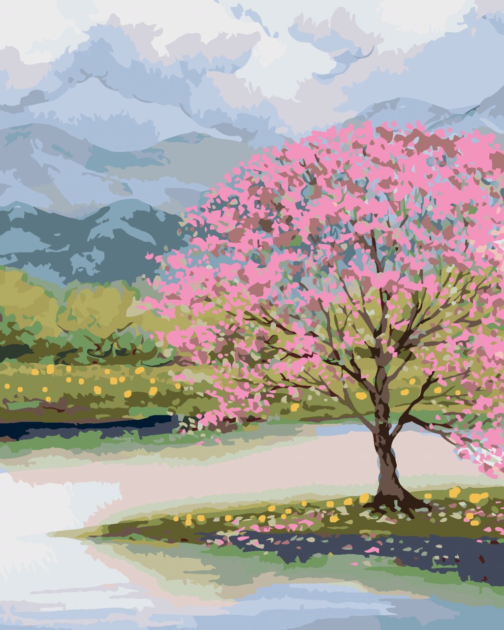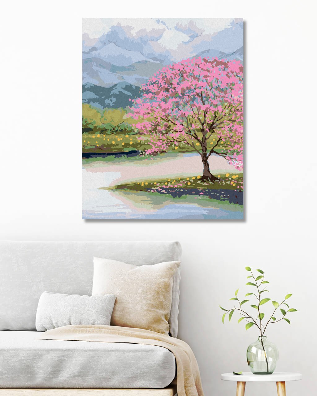 Maľovanie podľa čísel - ROZKVITNUTÁ SAKURA PRI VODE