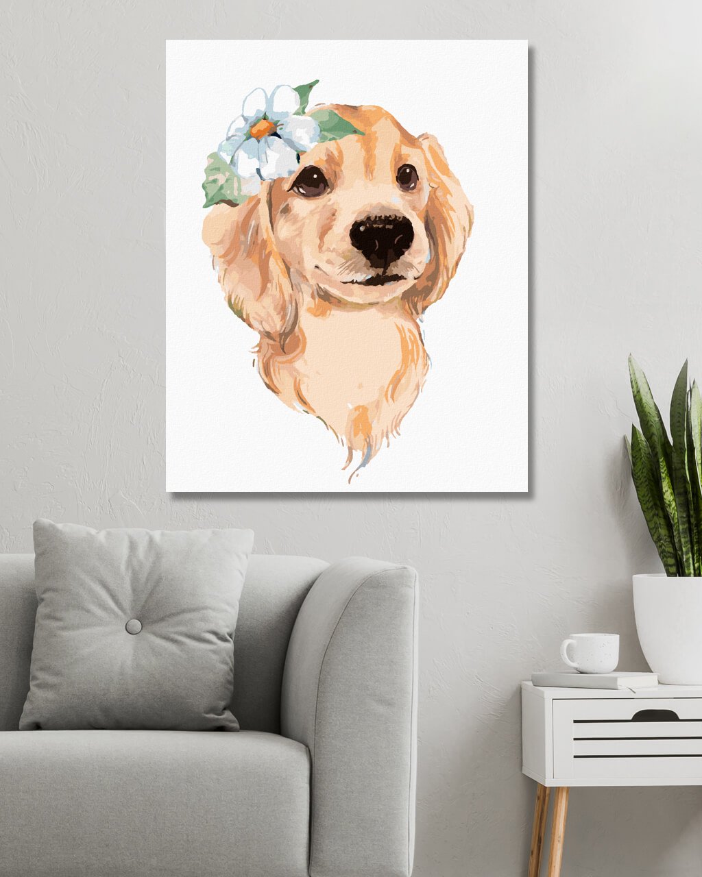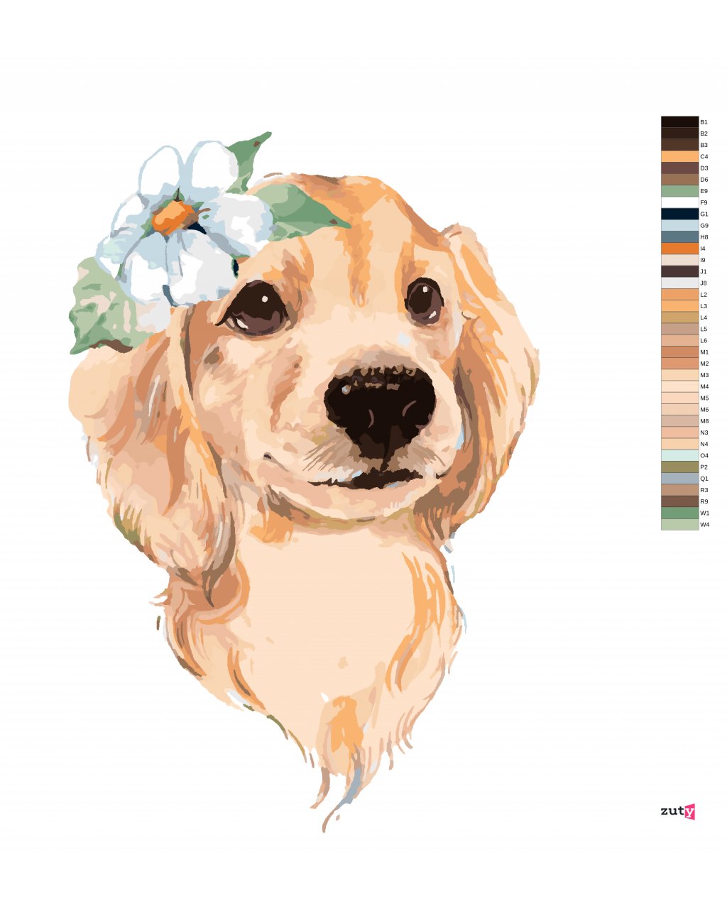 Maľovanie podľa čísel - ROZTOMILÝ PES A BIELA KVETINA