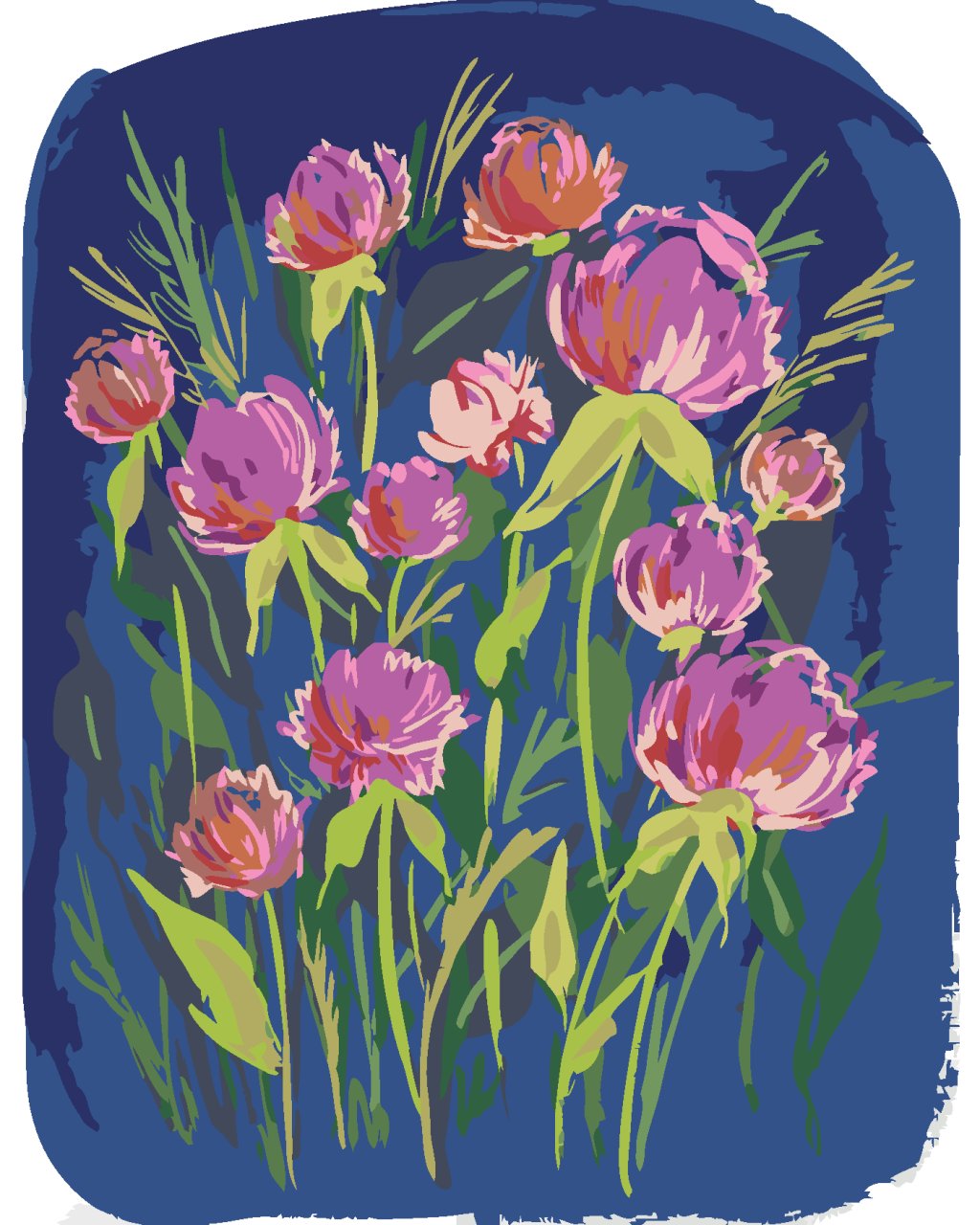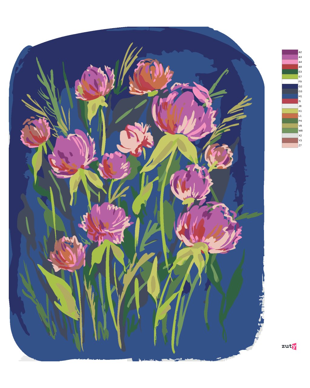 Maľovanie podľa čísel - RUŽOVÉ PIVONKY NA NOČNEJ LÚKE (ALEXANDRIA GILBERT)