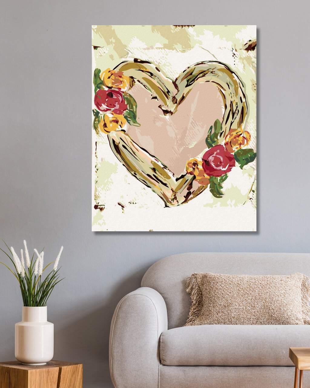 Maľovanie podľa čísel - RUŽOVÉ SRDCE S KVETMI (HALEY BUSH)