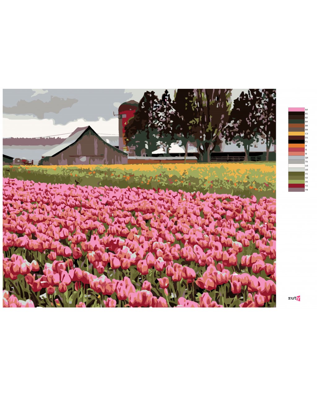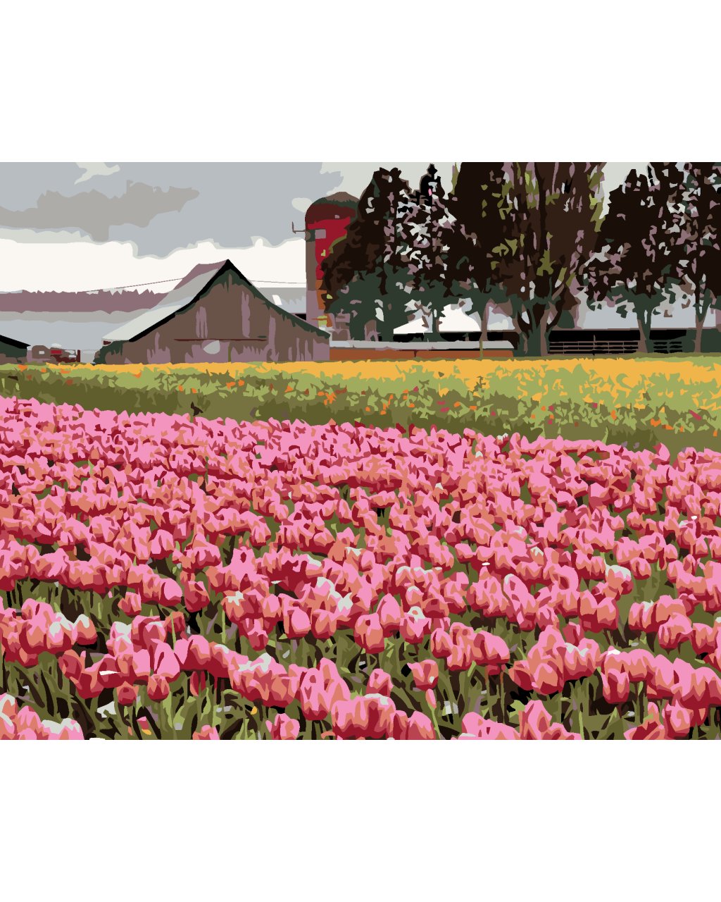 Maľovanie podľa čísel - RUŽOVÉ TULIPÁNY NA LÚKE (DENNIS FRATES)