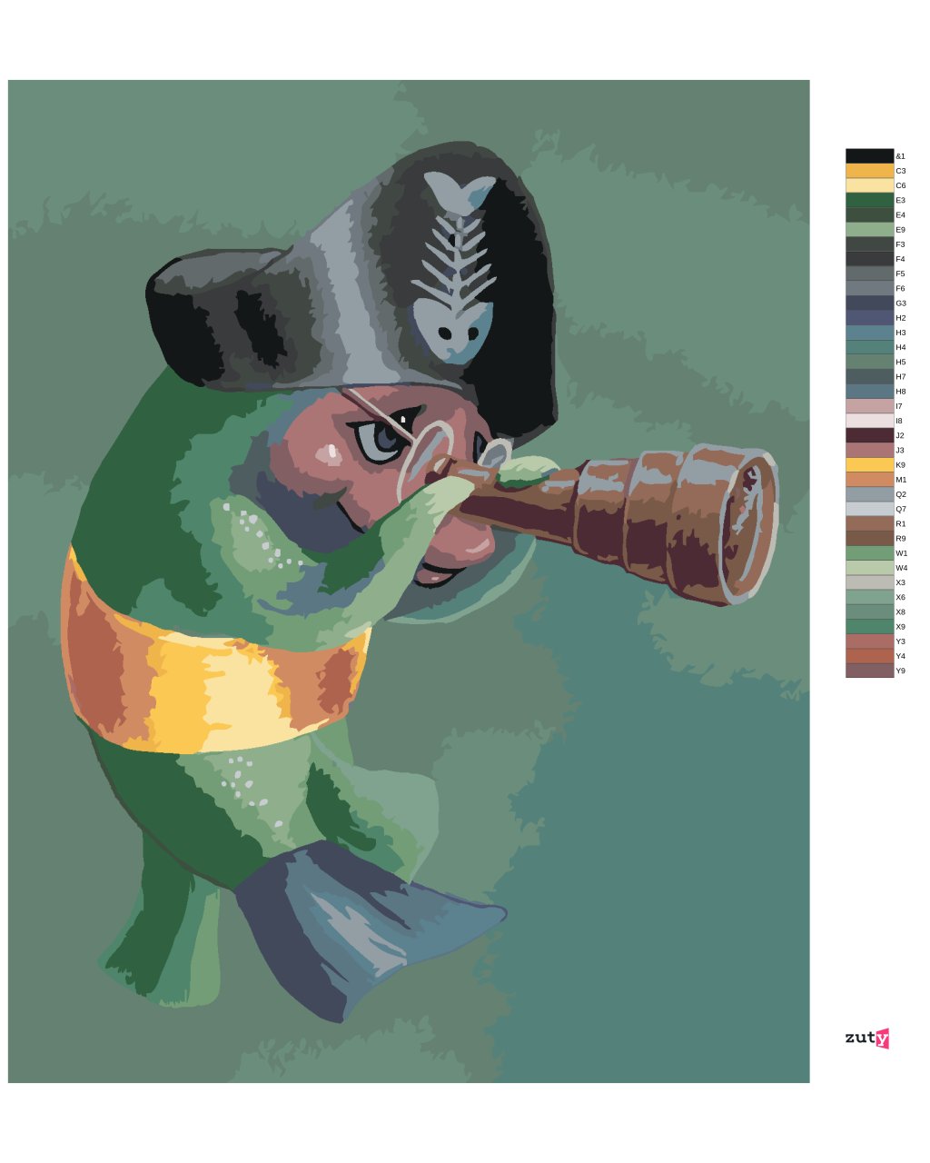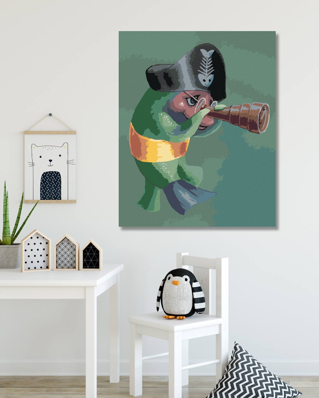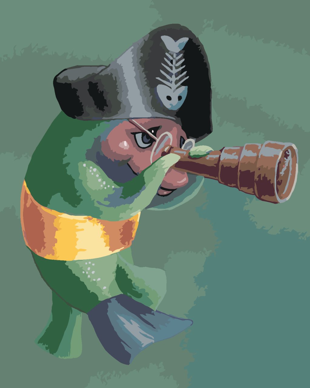 Maľovanie podľa čísel - RYBA PREZLEČENÁ ZA PIRÁTA (SUE ELLEN BROWN)