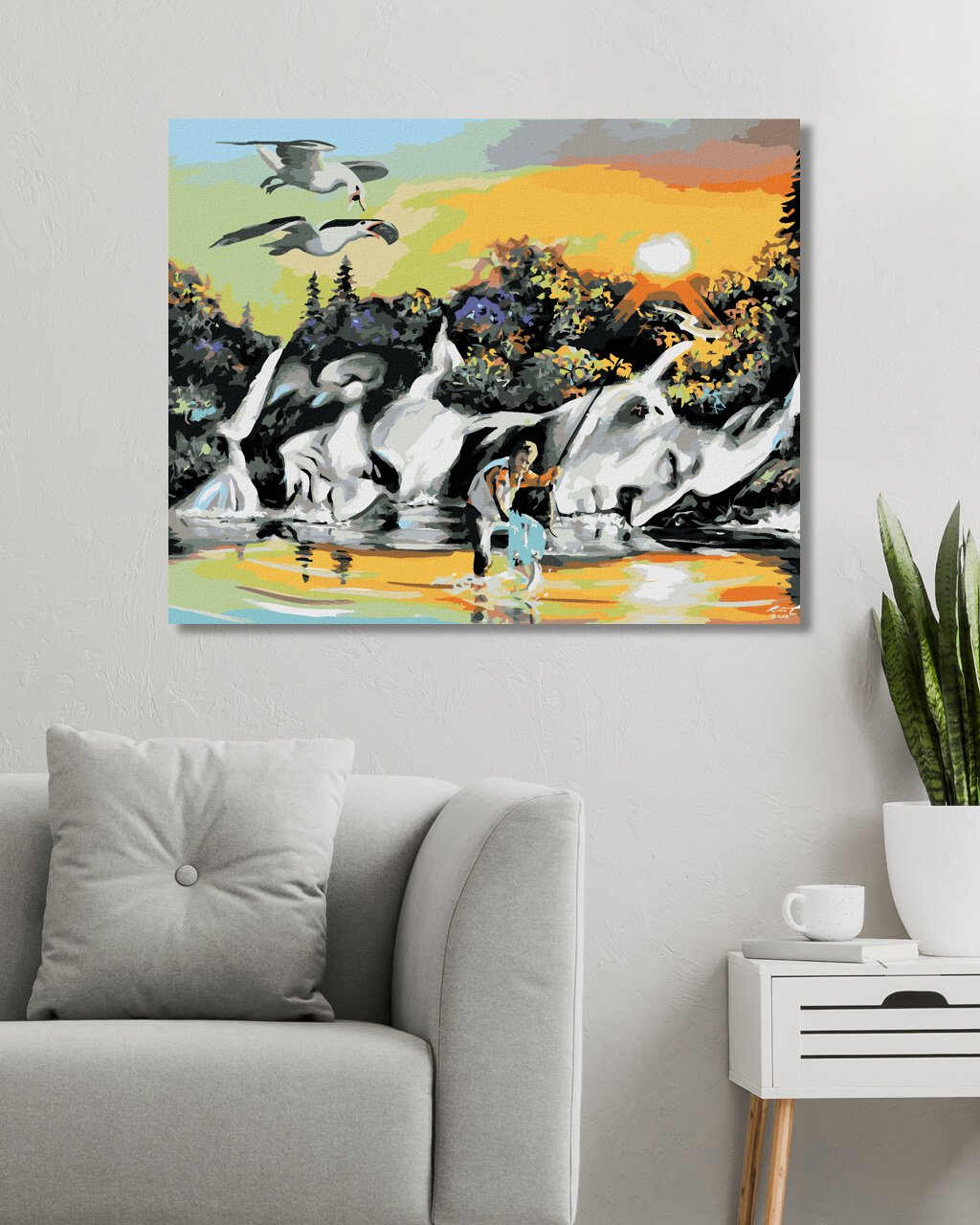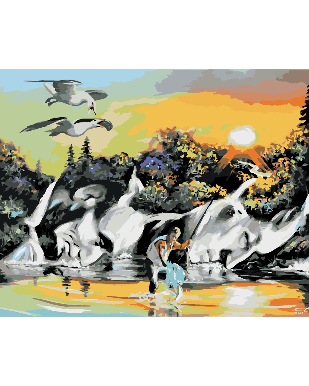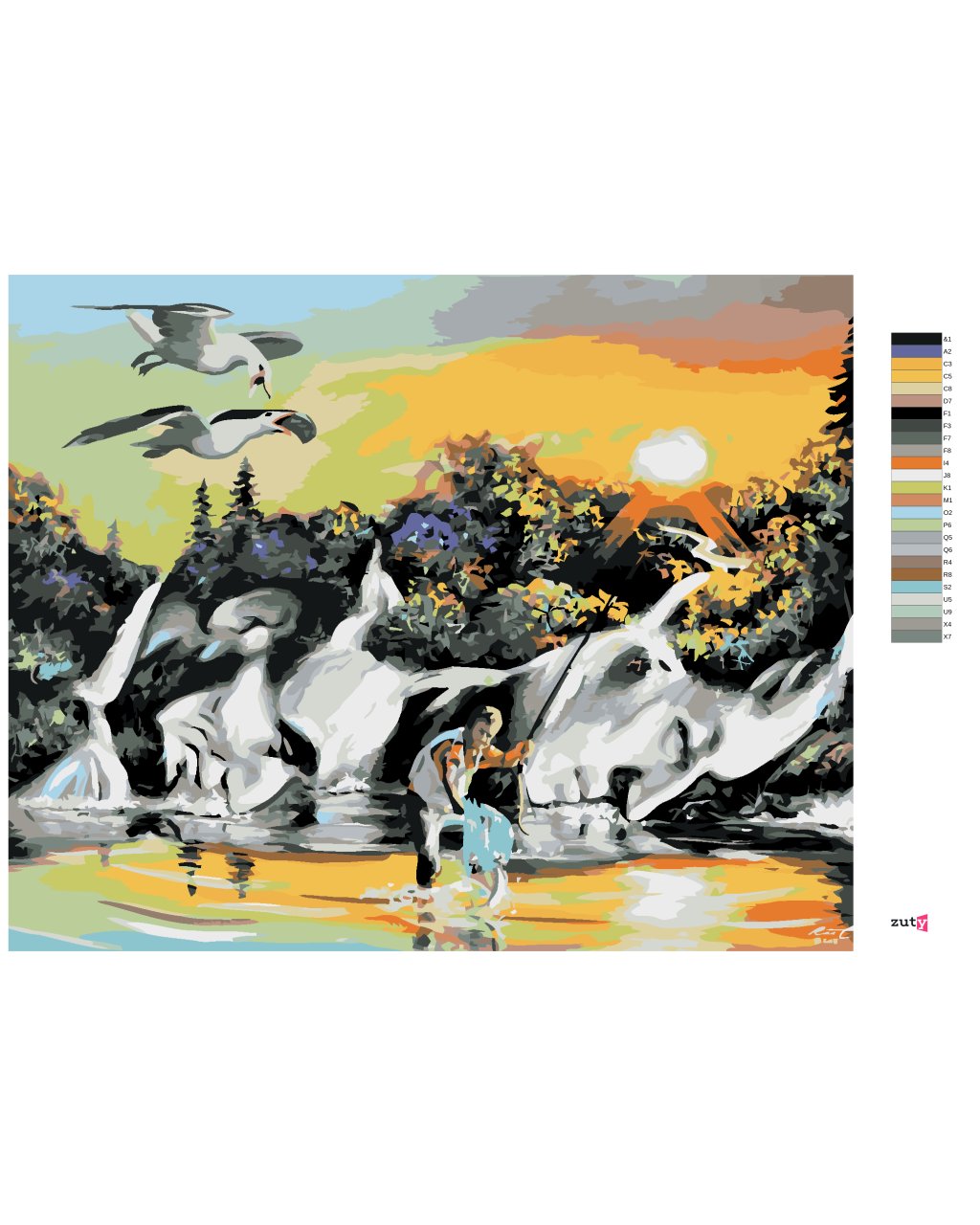 Maľovanie podľa čísel - RYBÁR, SILUETY POLITIKOV A ZÁPAD SLNKA (D. RUSTY RUST)
