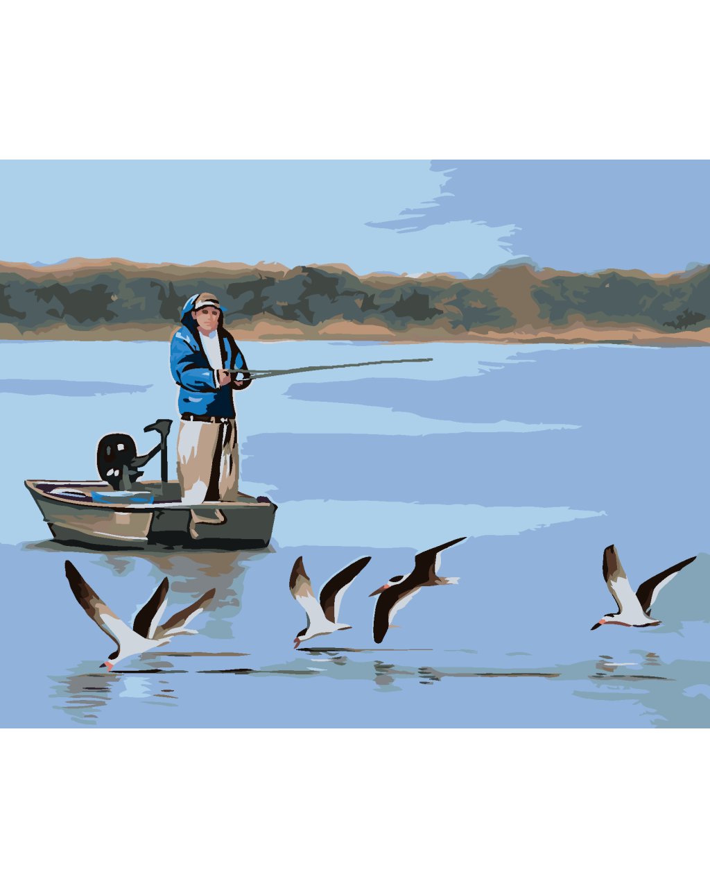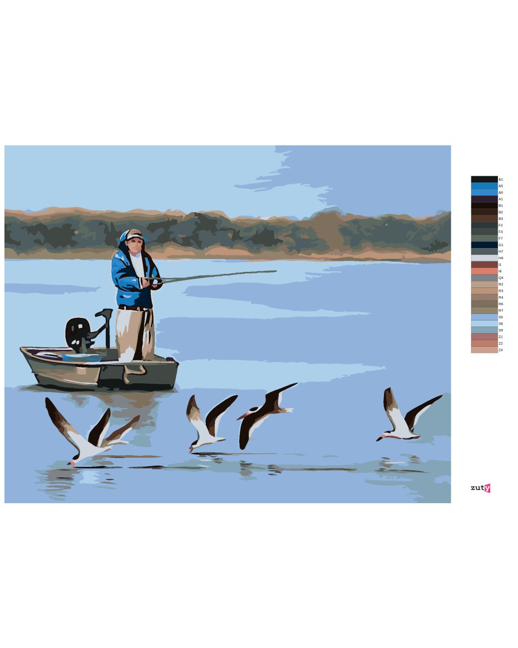 Maľovanie podľa čísel - RYBÁR NA LODI A ČAJKY (D. RUSTY RUST)