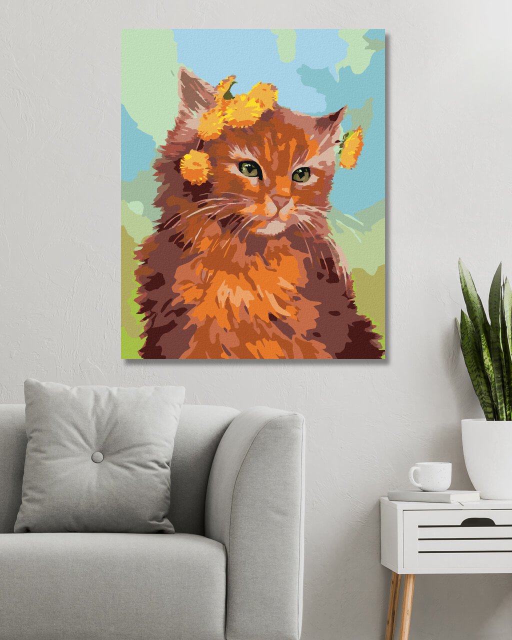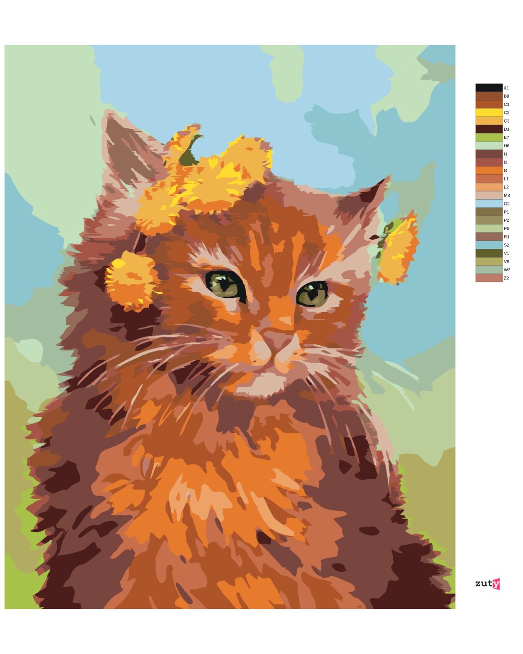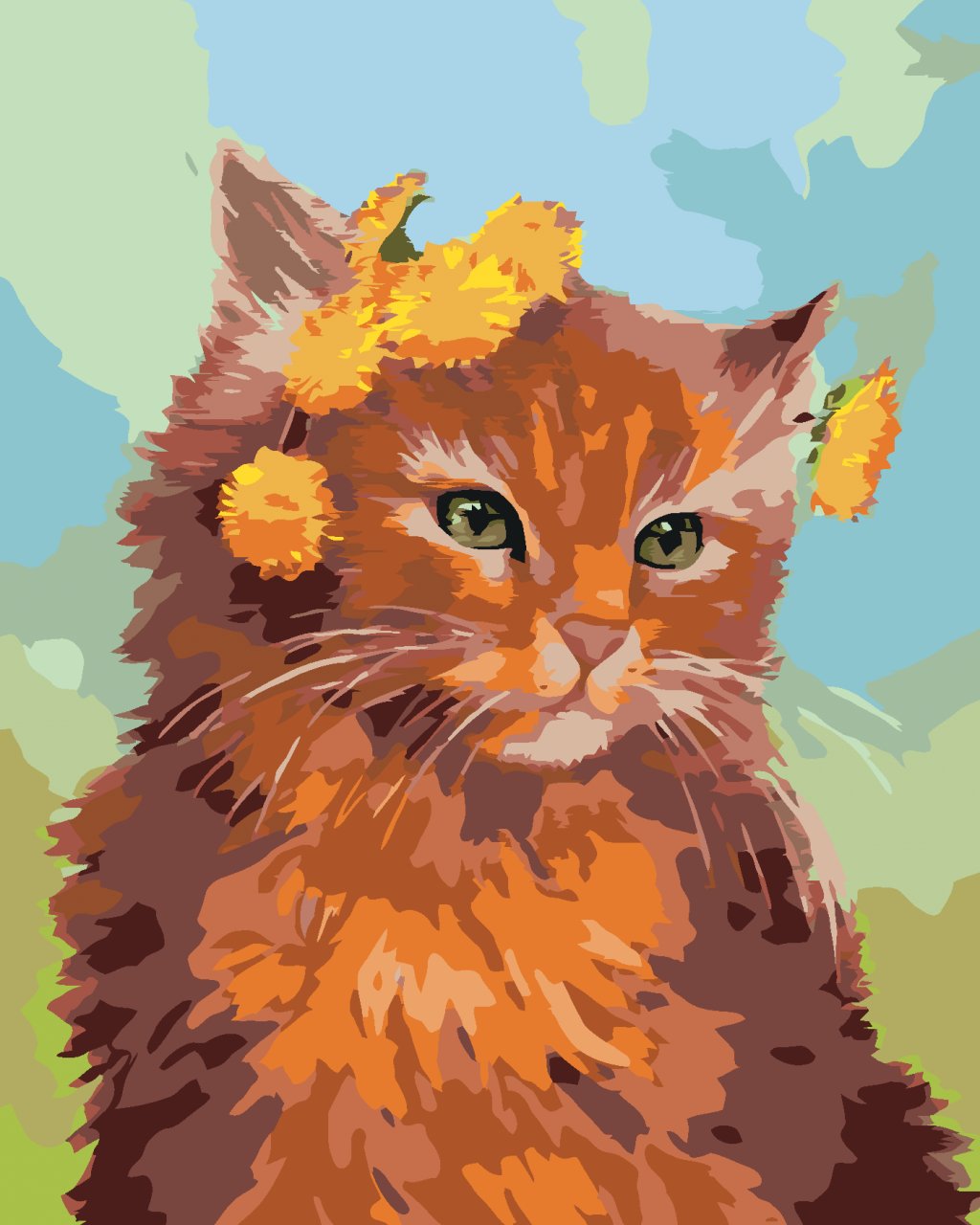 Maľovanie podľa čísel - RYŠAVÝ KOCÚR S PÚPAVOU (MYROSLAVA VOLOSCHUK)