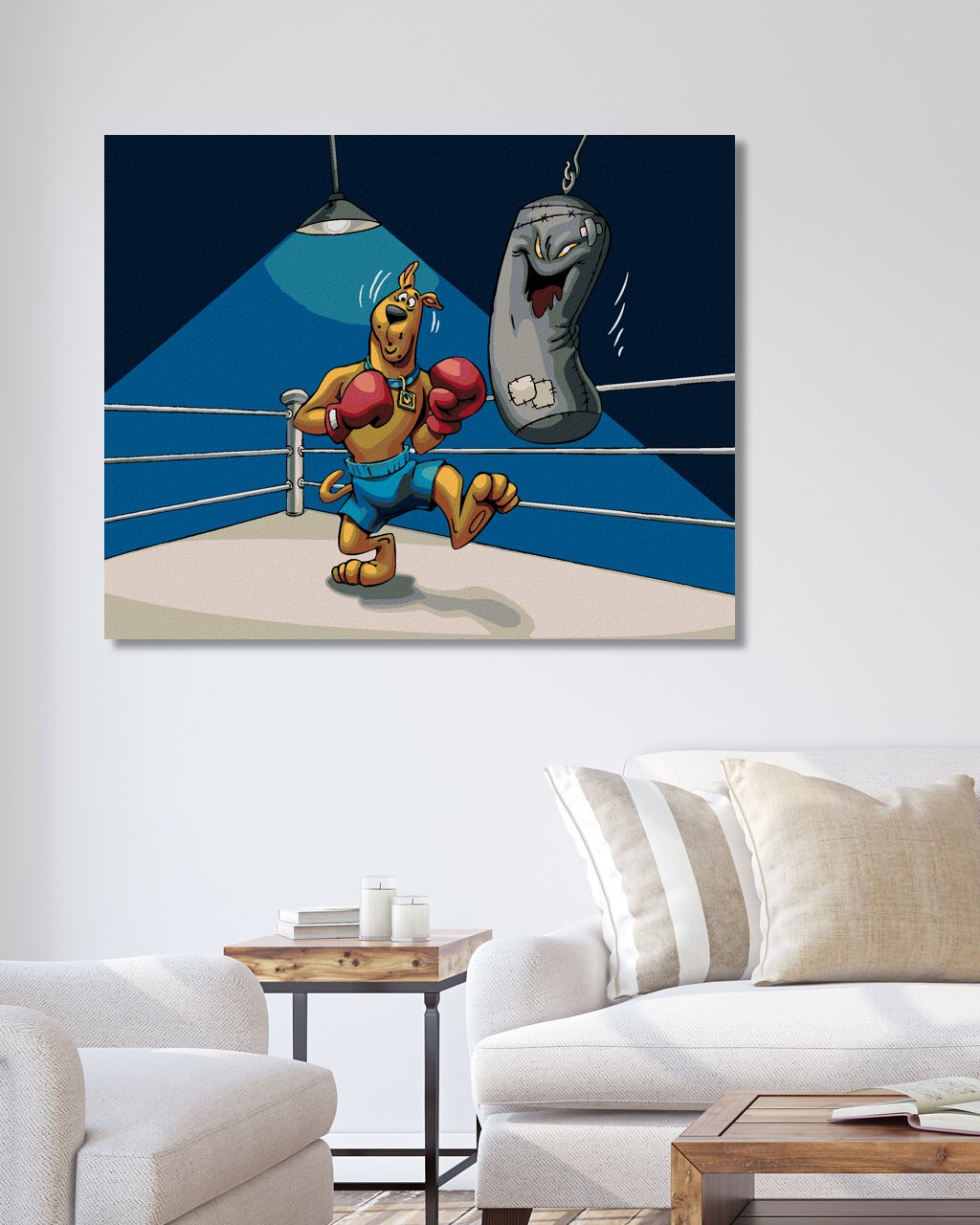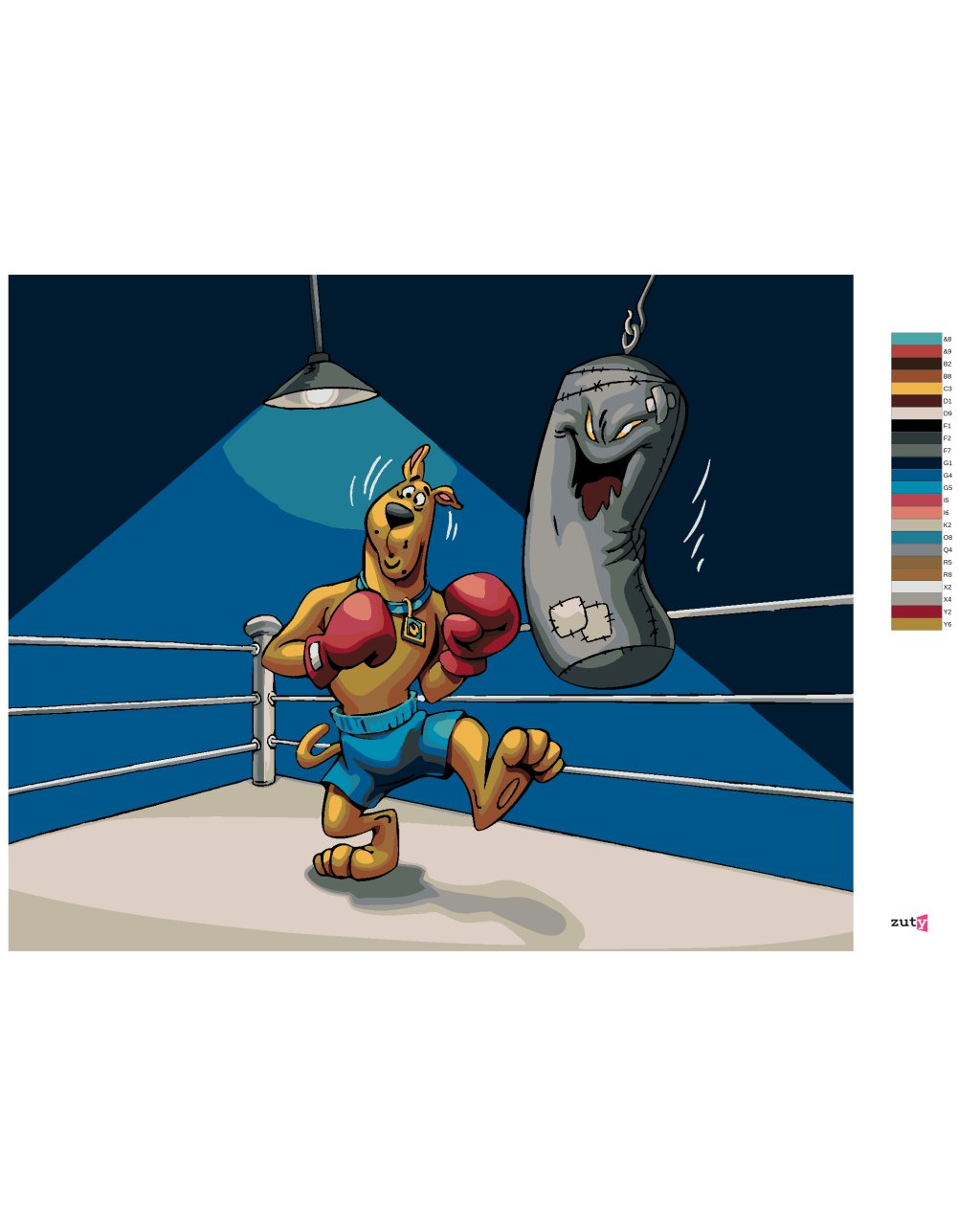 Maľovanie podľa čísel - SCOOBY BOXER A STRAŠIDELNÉ BOXOVACIE VRECE (SCOOBY DOO)