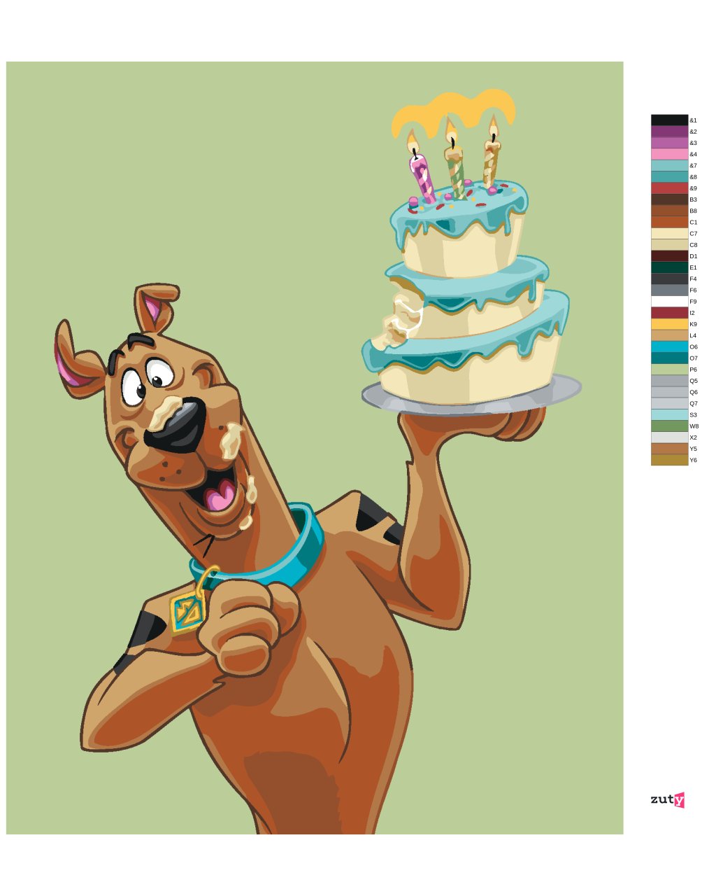 Maľovanie podľa čísel - SCOOBY S NARODENINOVOU TORTOU (SCOOBY DOO)
