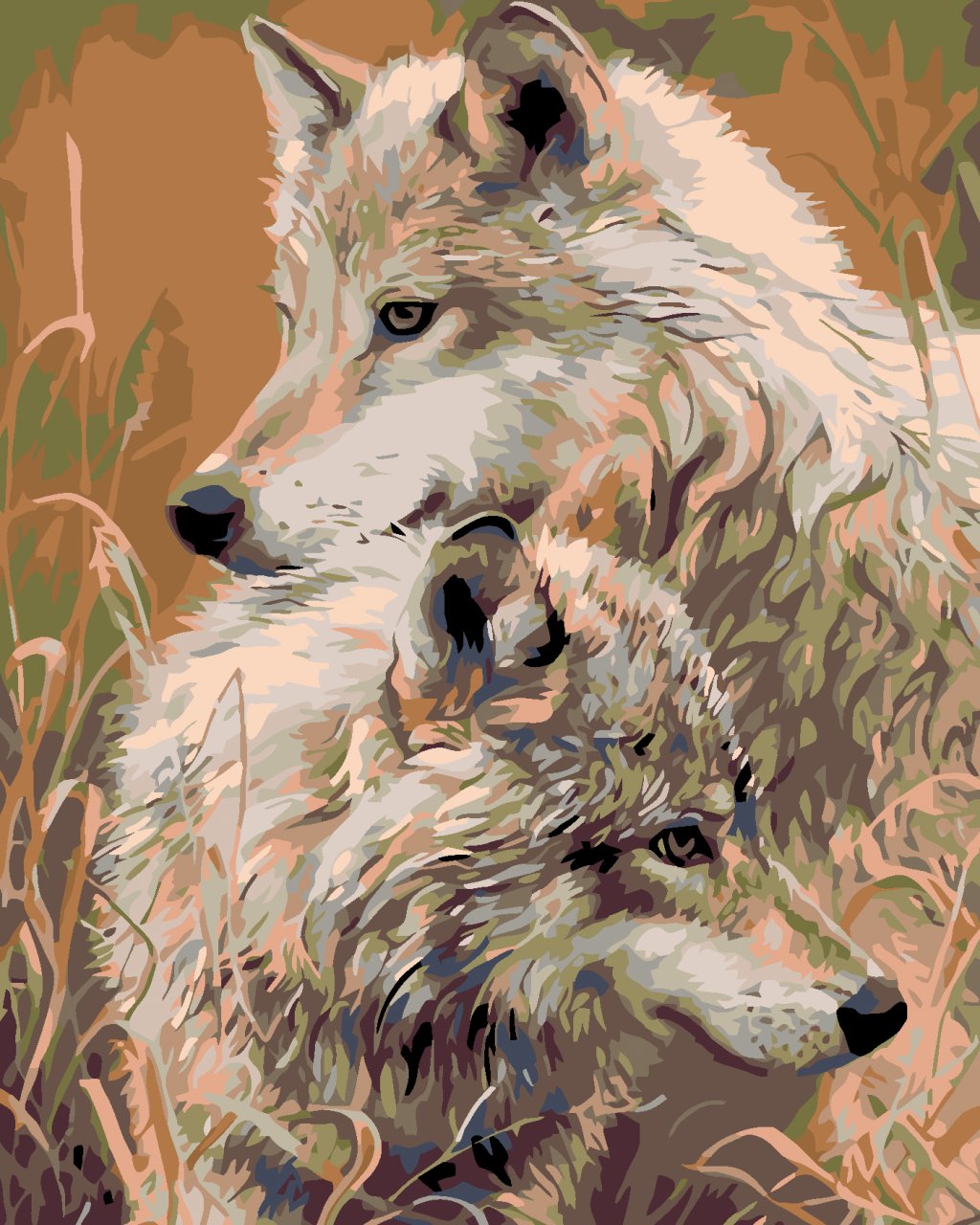 Maľovanie podľa čísel - ŠEDÍ VLCI
