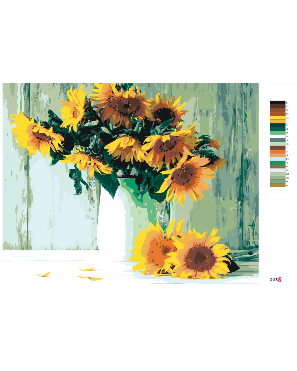 Maľovanie podľa čísel - SLNEČNICE PRI STAROM MÚRE