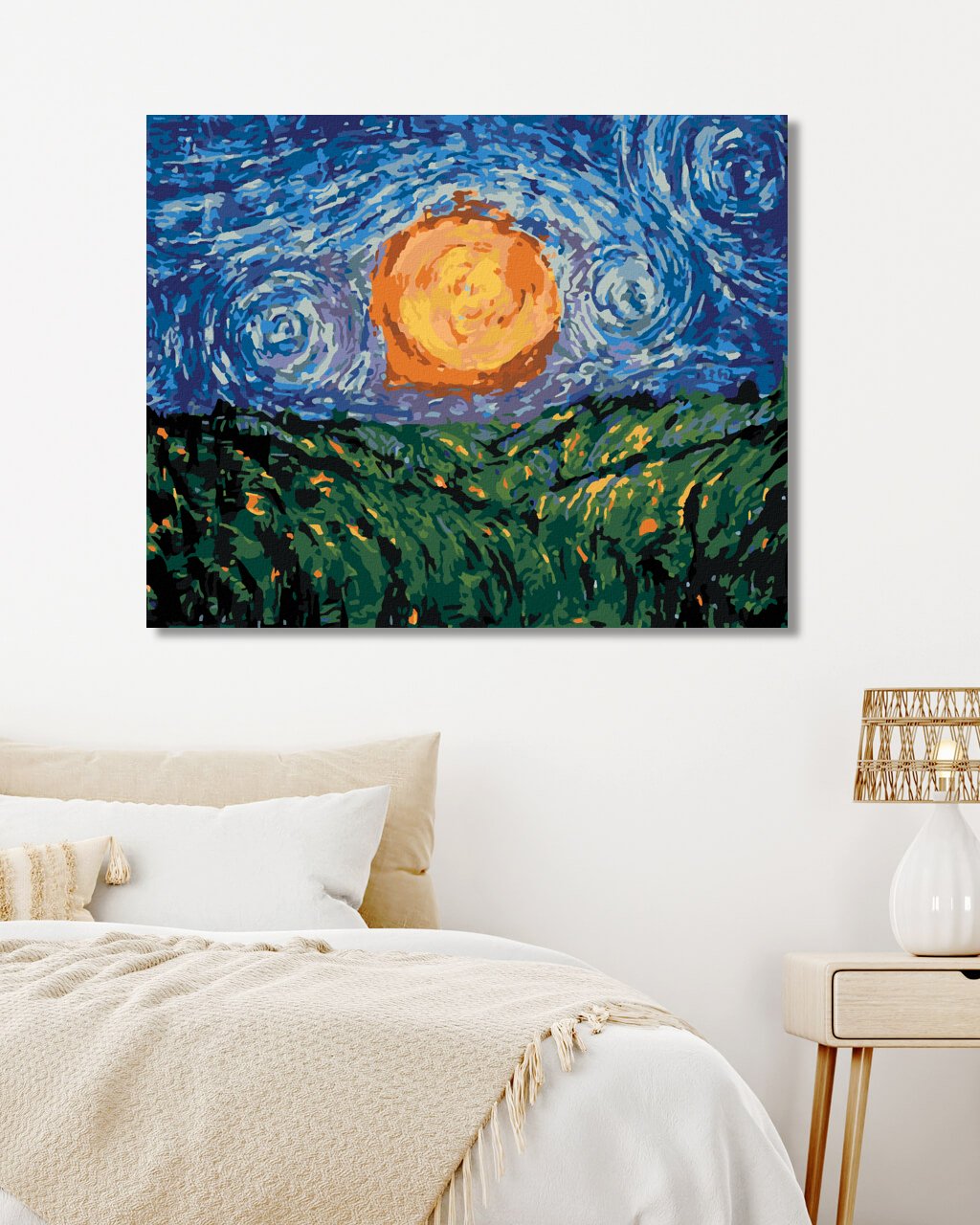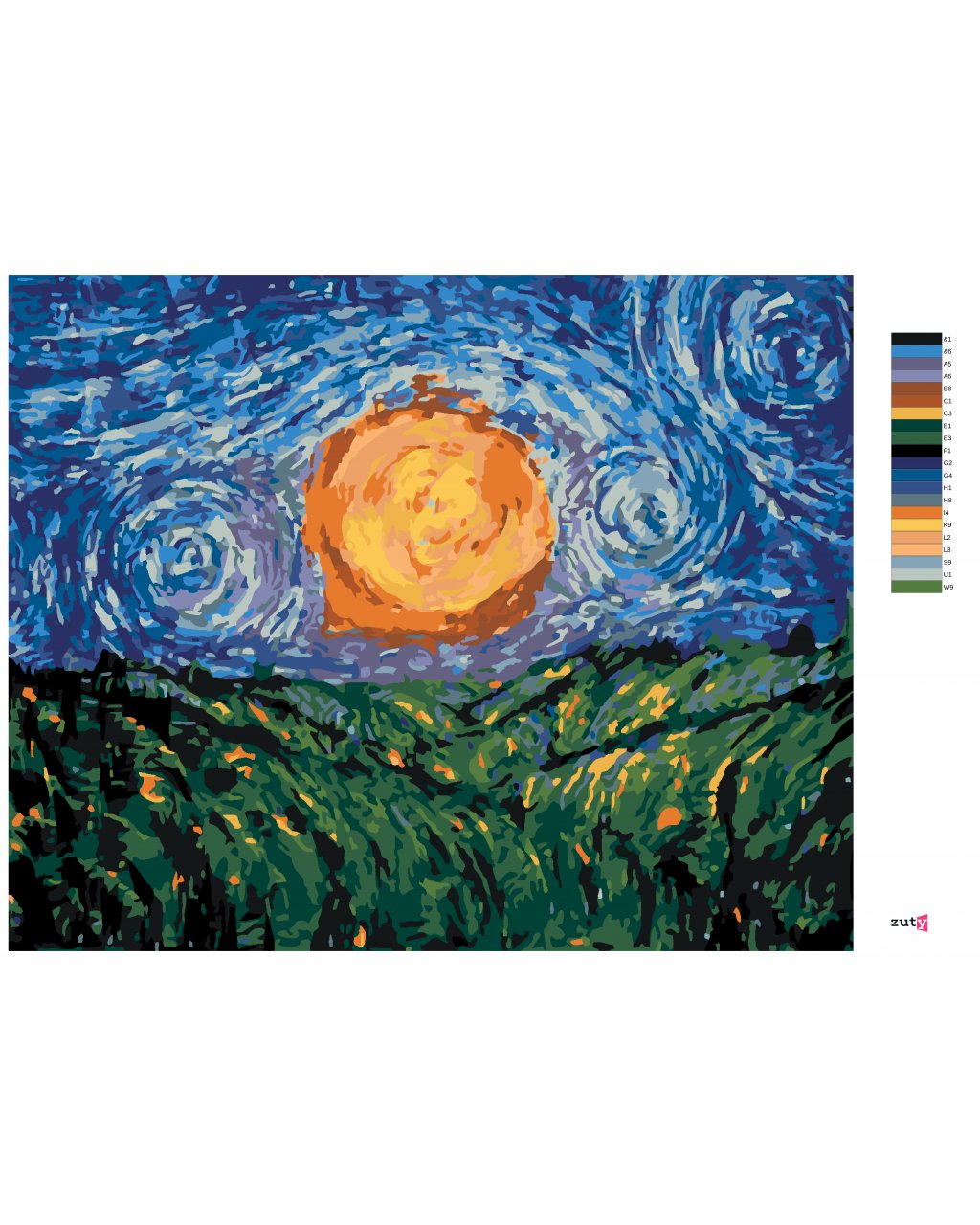Maľovanie podľa čísel - SLNKO NA OBLOHE PODĽA VAN GOGHA