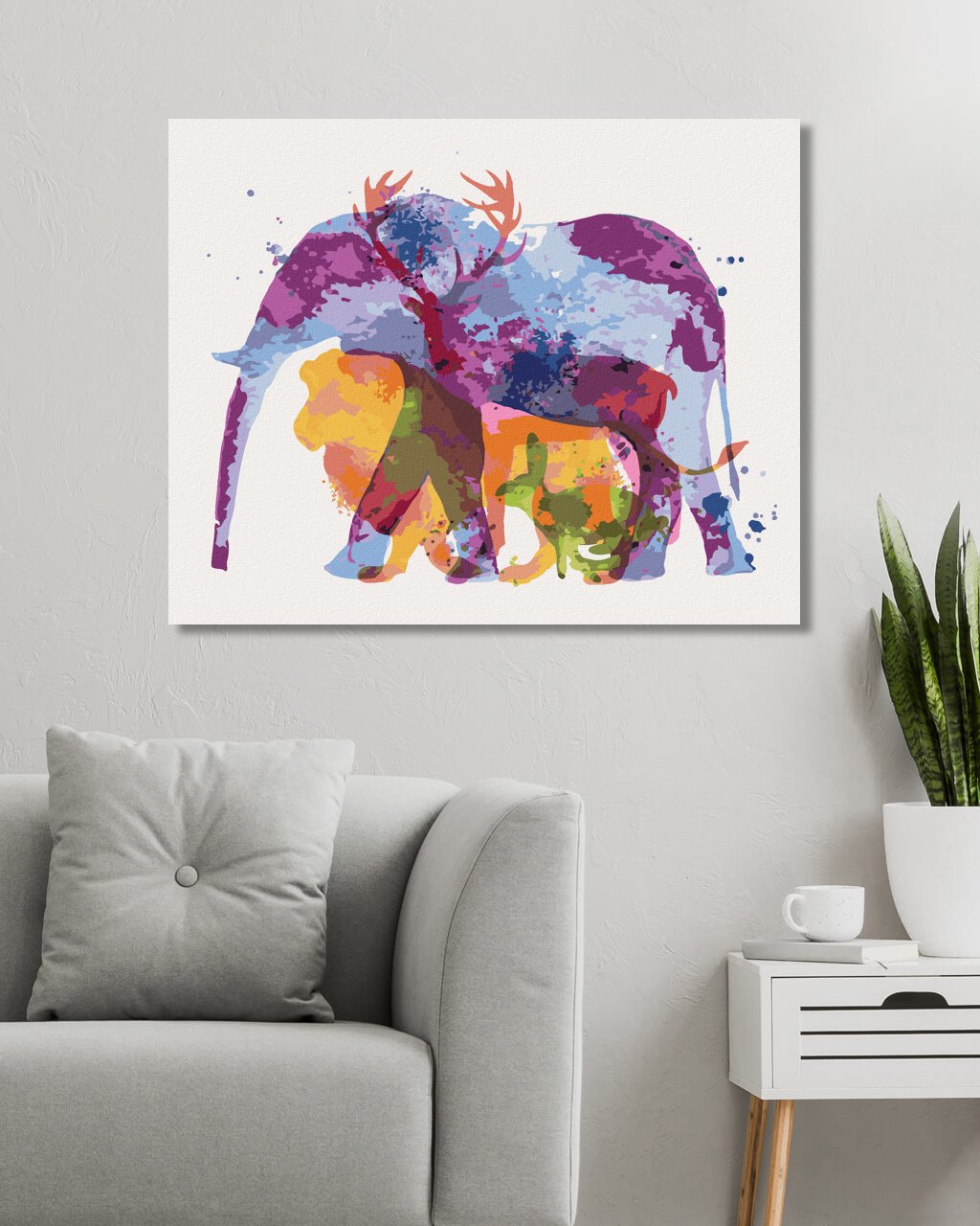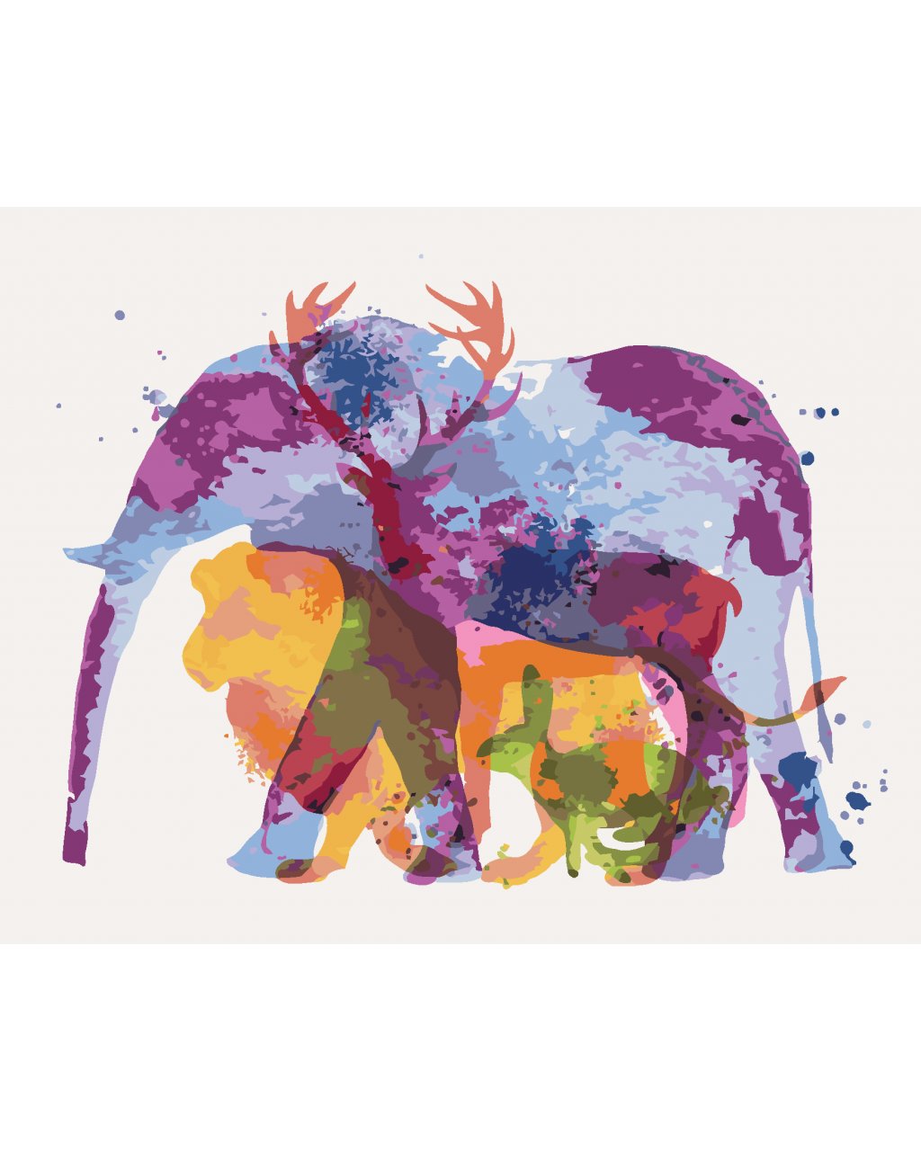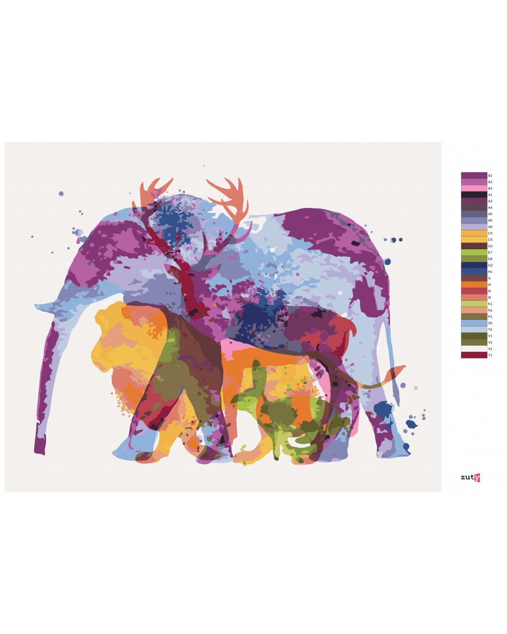 Maľovanie podľa čísel - SLON, JELEN, LEV A KRÁLIK