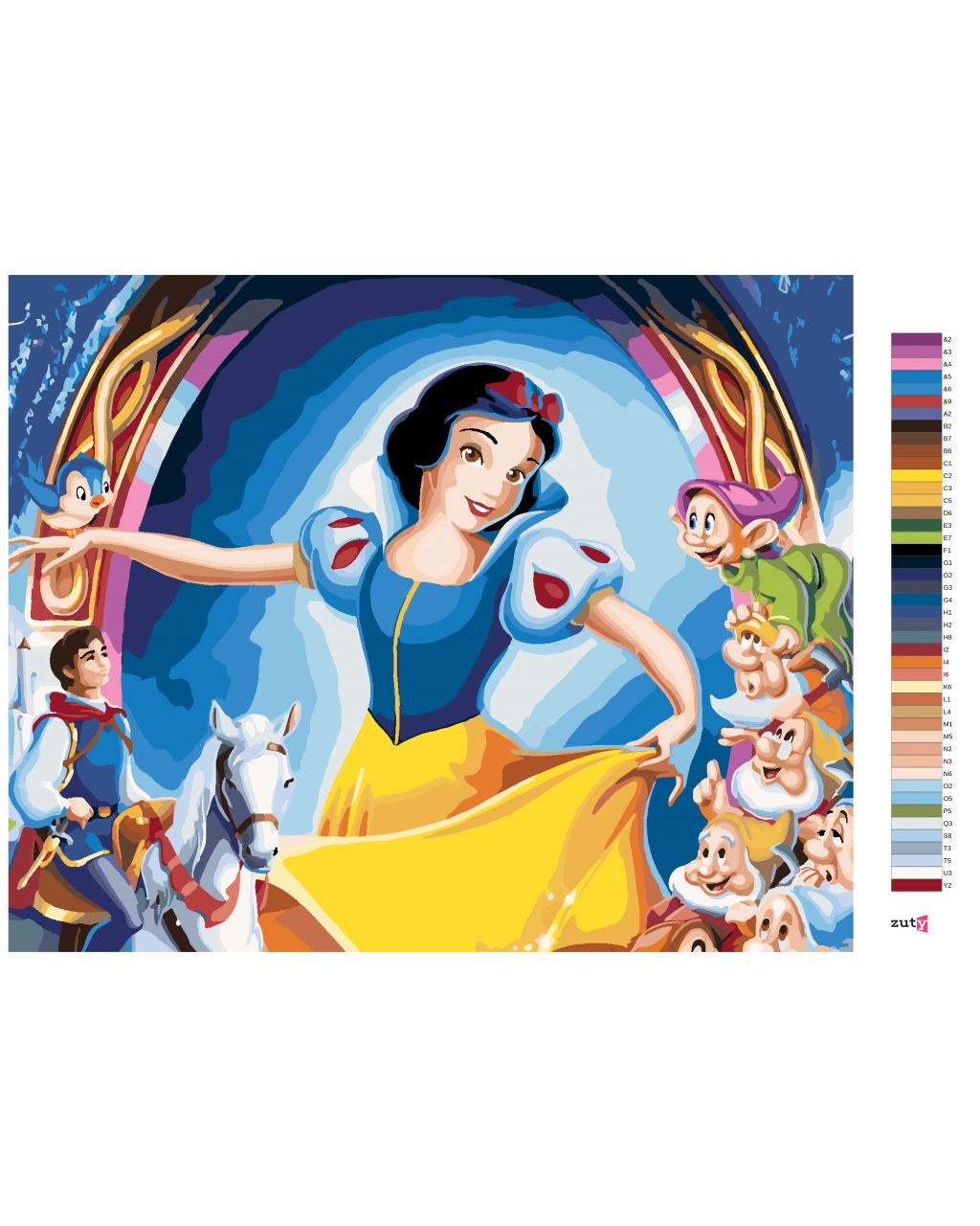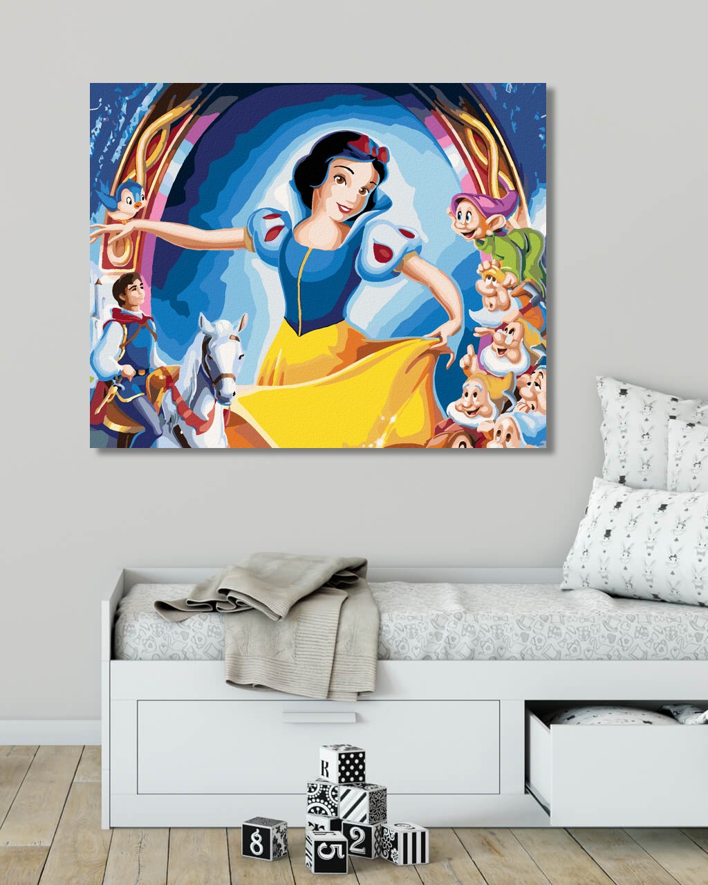 Maľovanie podľa čísel - SNEHULIENKA, TRPASLÍCI A PRINC NA KONI