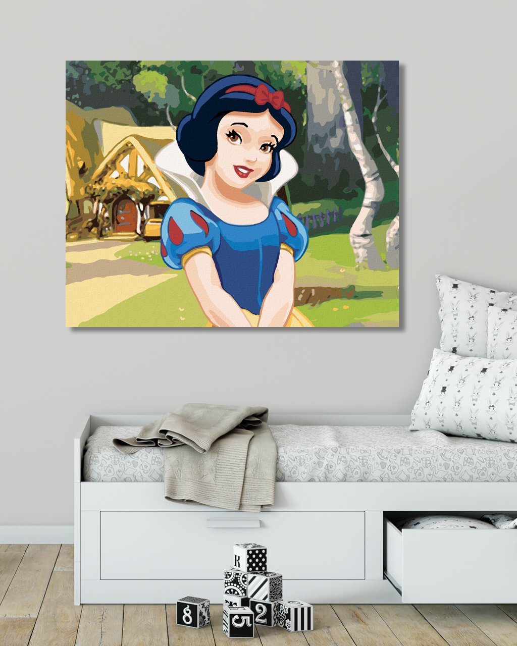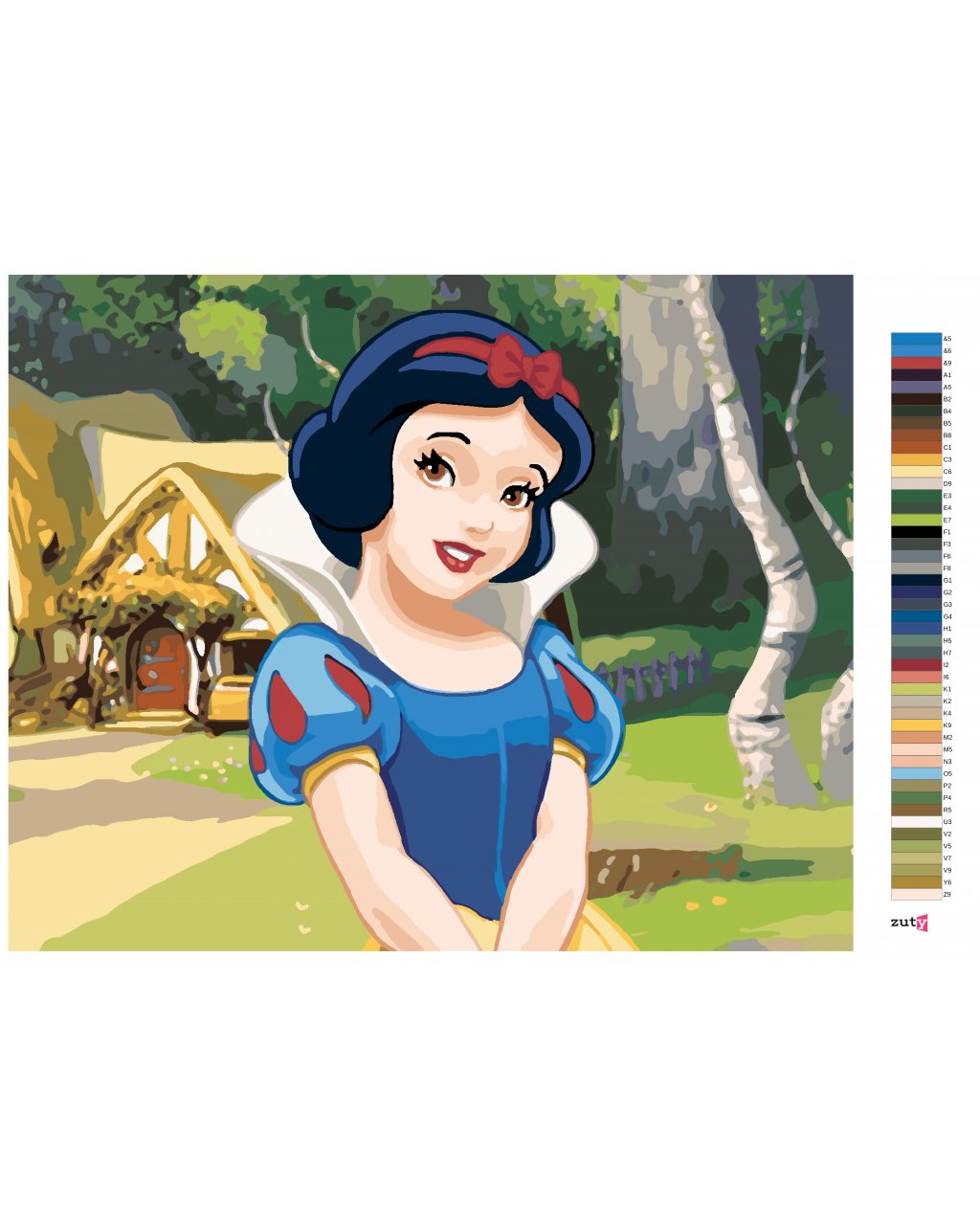 Maľovanie podľa čísel - SNEHULIENKA PRI CHALÚPKE TRPASLÍKOV