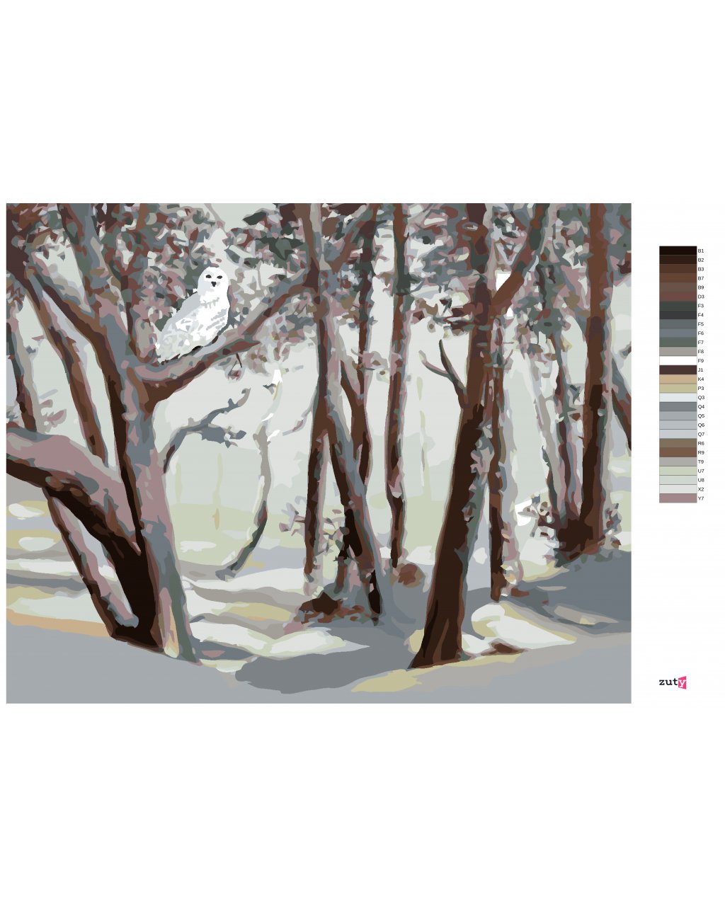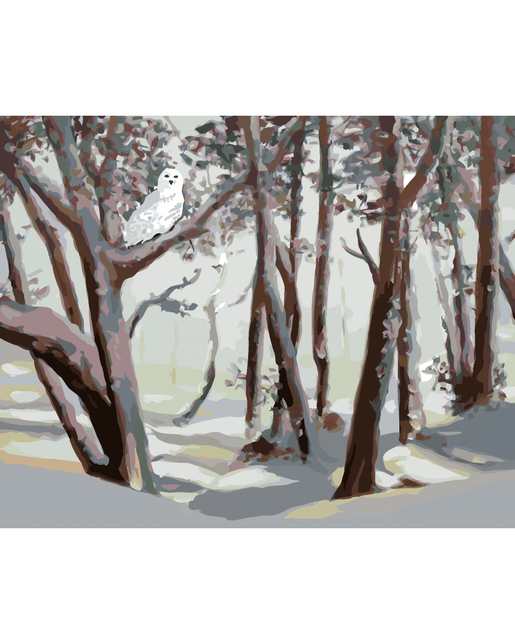 Maľovanie podľa čísel - SNEŽNÁ SOVA A LES V ZIME (D. RUSTY RUST)